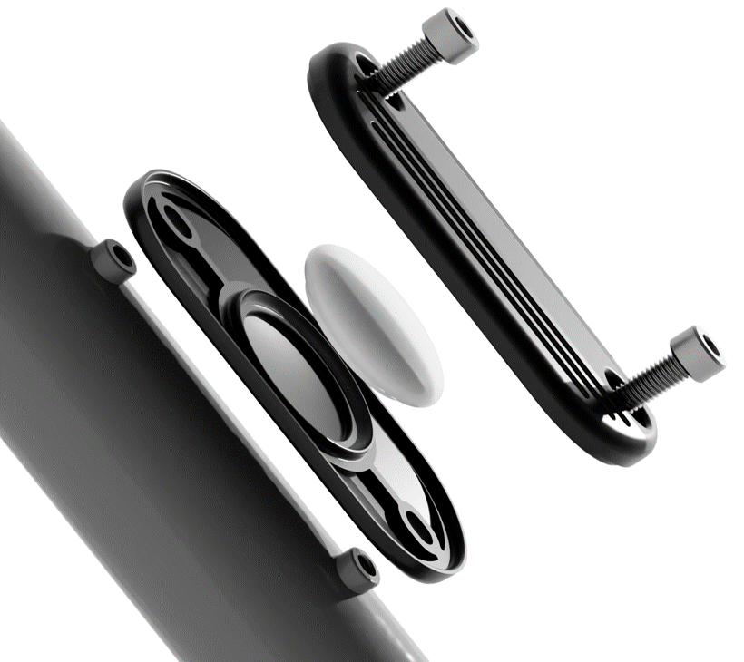 A csomagban az AirTag biztonságos tárolására szolgáló két darab légkönnyű műanyag héj, valamint két darab csavar található, amellyel stabilan rögzíthető a tároló és benne az AirTag. A konstrukció ideális megoldás, ha mindenféle hivalkodás nélkül szeretnénk elhelyezni egy AirTag tárgykeresőt a kerékpárunkon.