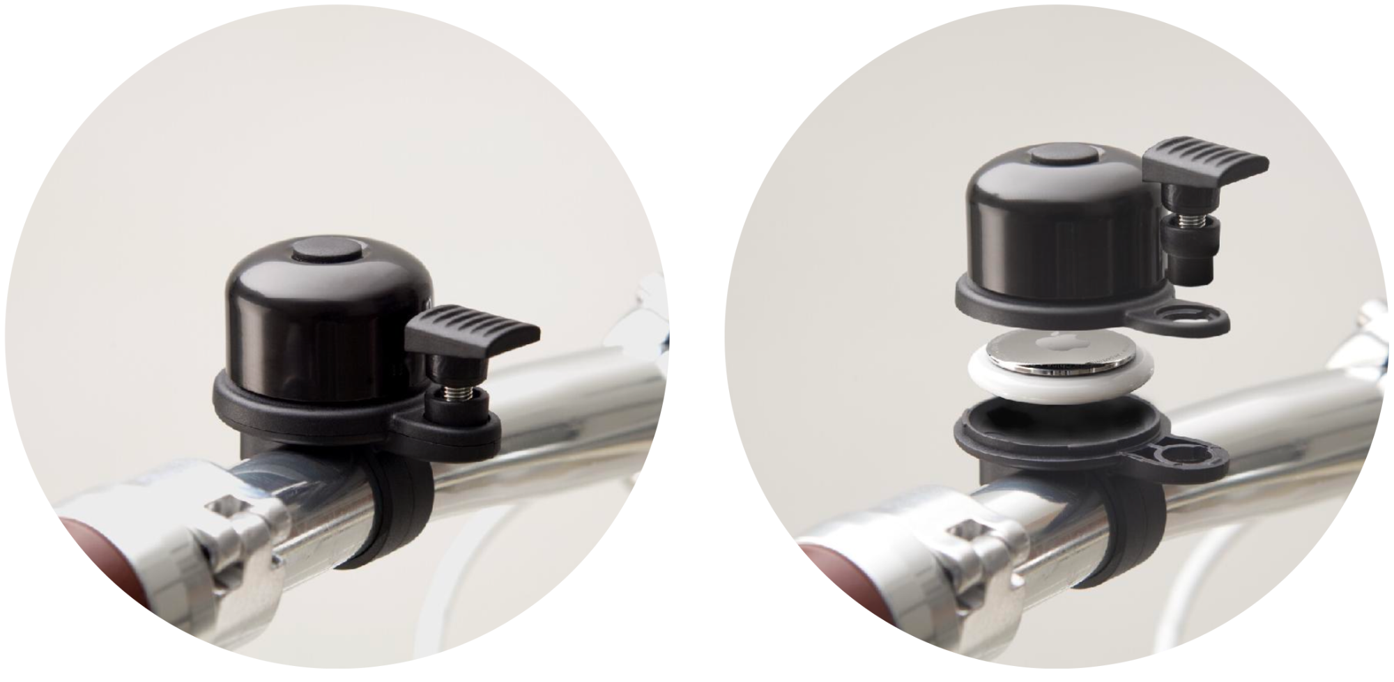 Az AirBell termék erre a feladatkörre kínál nagyszerű áthidaló megoldást: a termék egy kis méretű, klasszikus csengő, amelynek aljában egy AirTag méretű üreg található, amely kiengedi a Bluetooth sugarakat, védi a kicsiny tárgykeresőt, és még hasznos is a kerékpár mindennapi használata során.