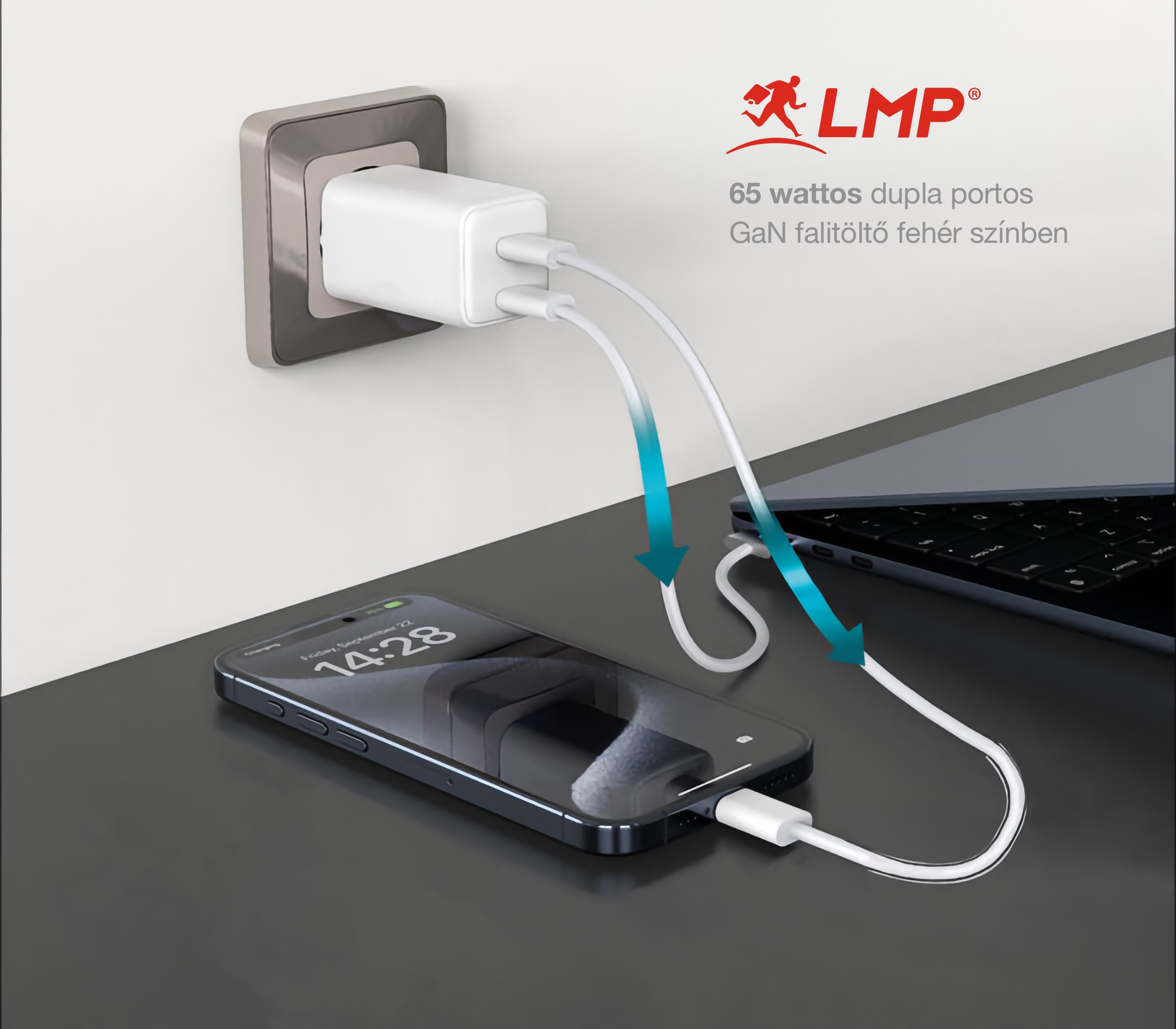 LMP 65 wattos USB-C kétportos falitöltő