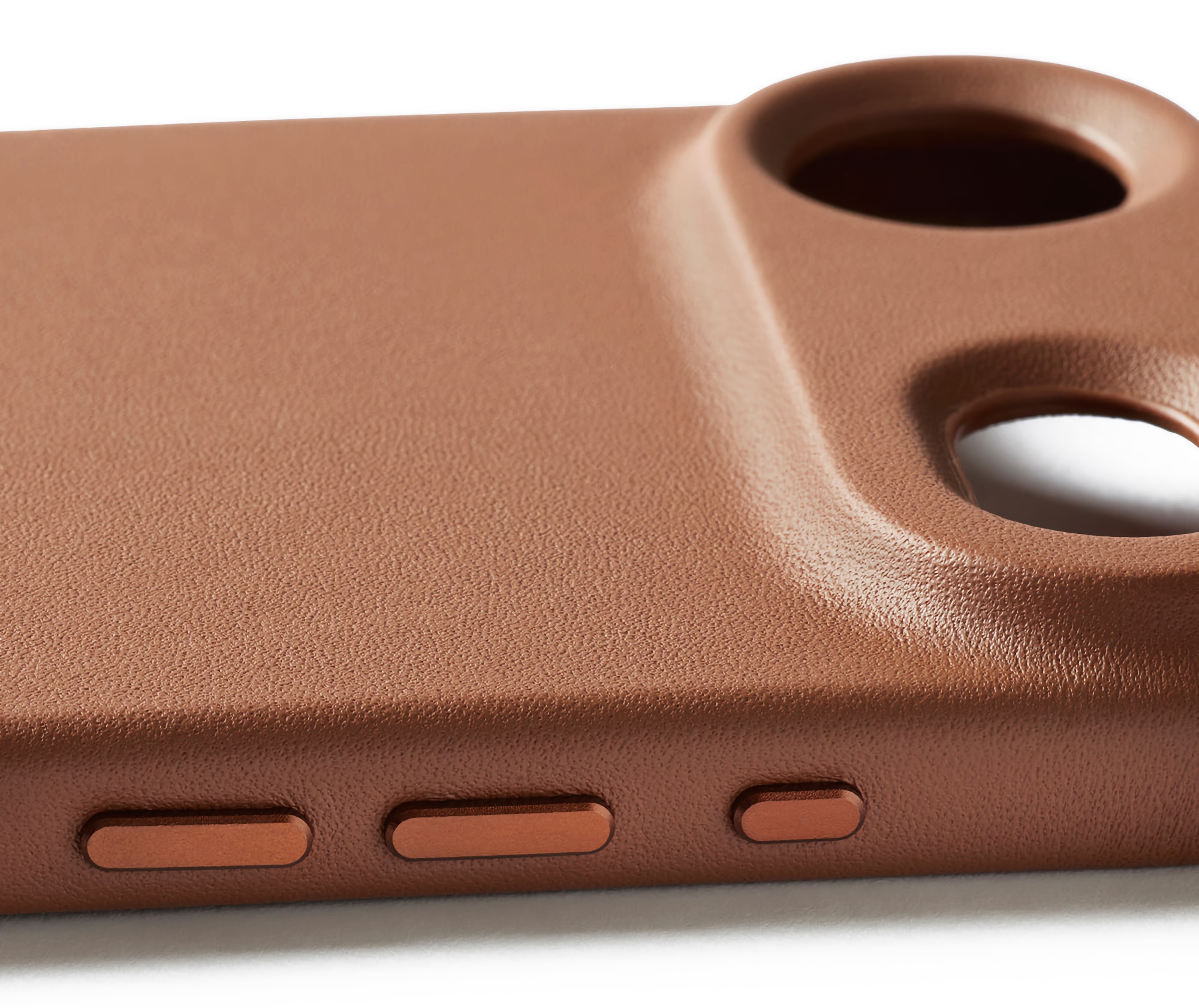 Fontos eleme a használati élménynek a gombok könnyed lenyomása: a Mujjo ennél a szériánál először precízen megmunkált fém gombokat alkotott, így a nyomás élmény nem tér el nagyban a telefon gombjának tényleges megnyomásától. Ez jelentős kényelmi eleme a toknak.