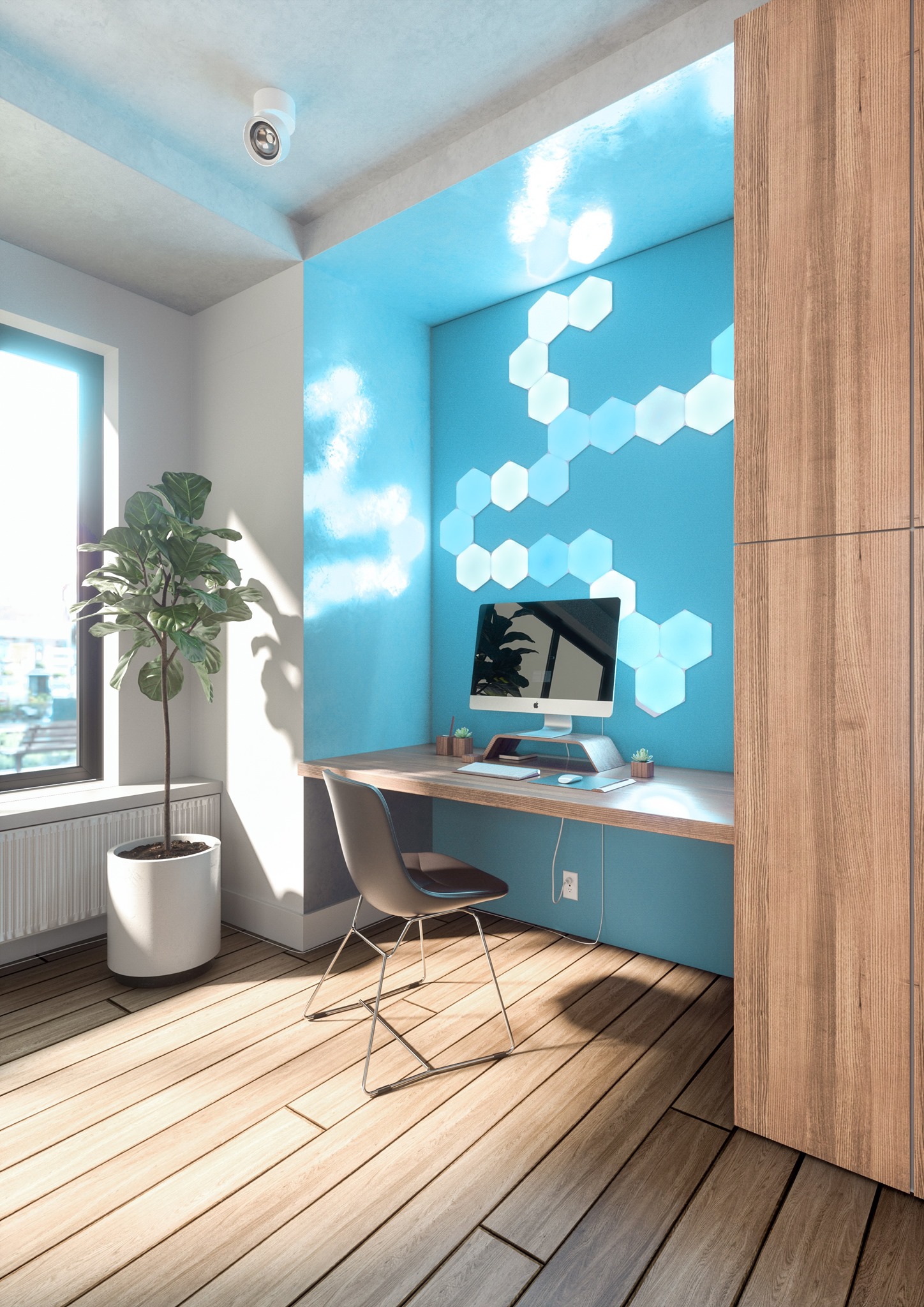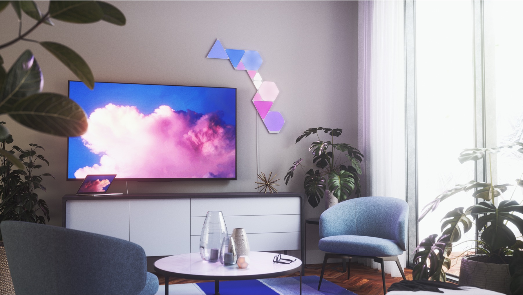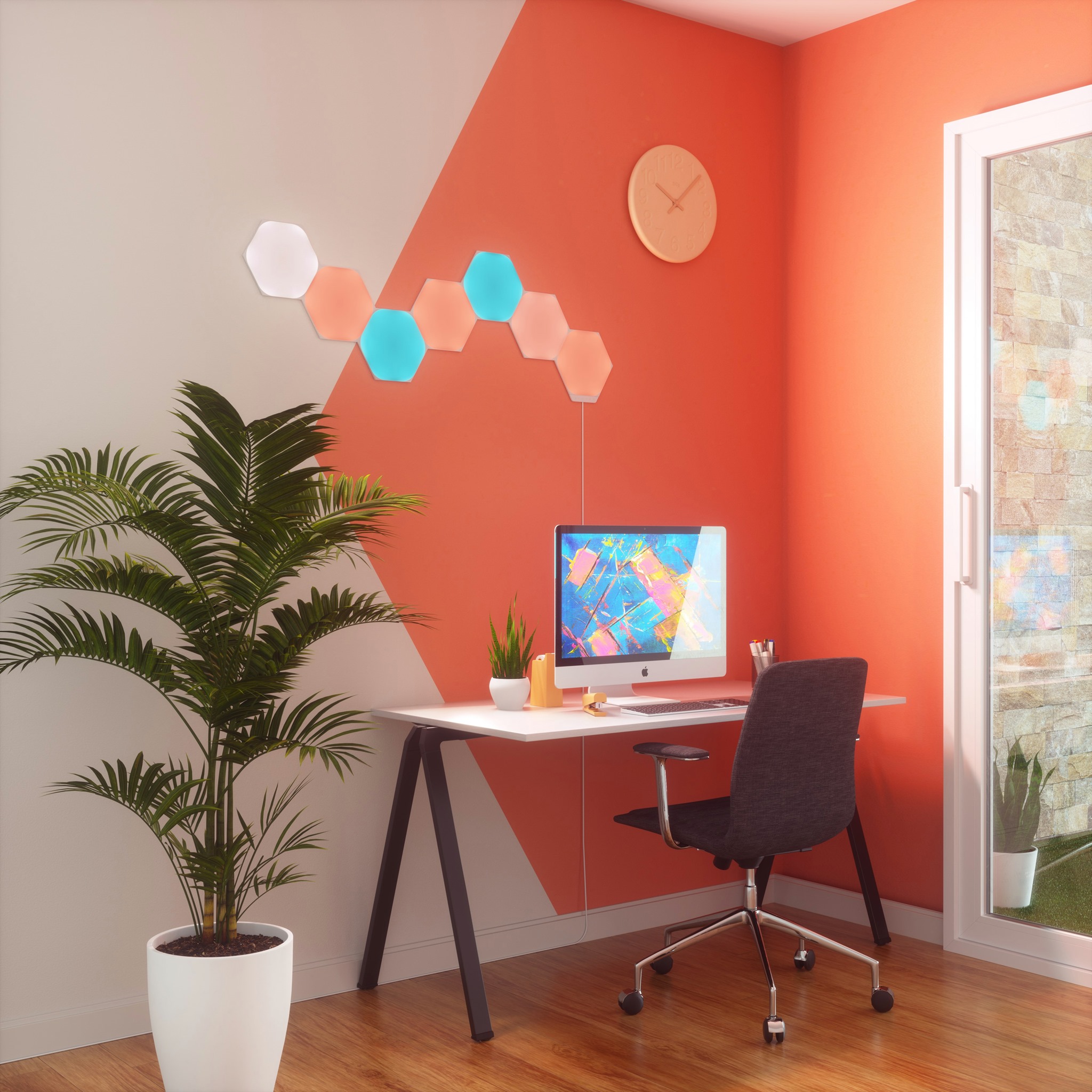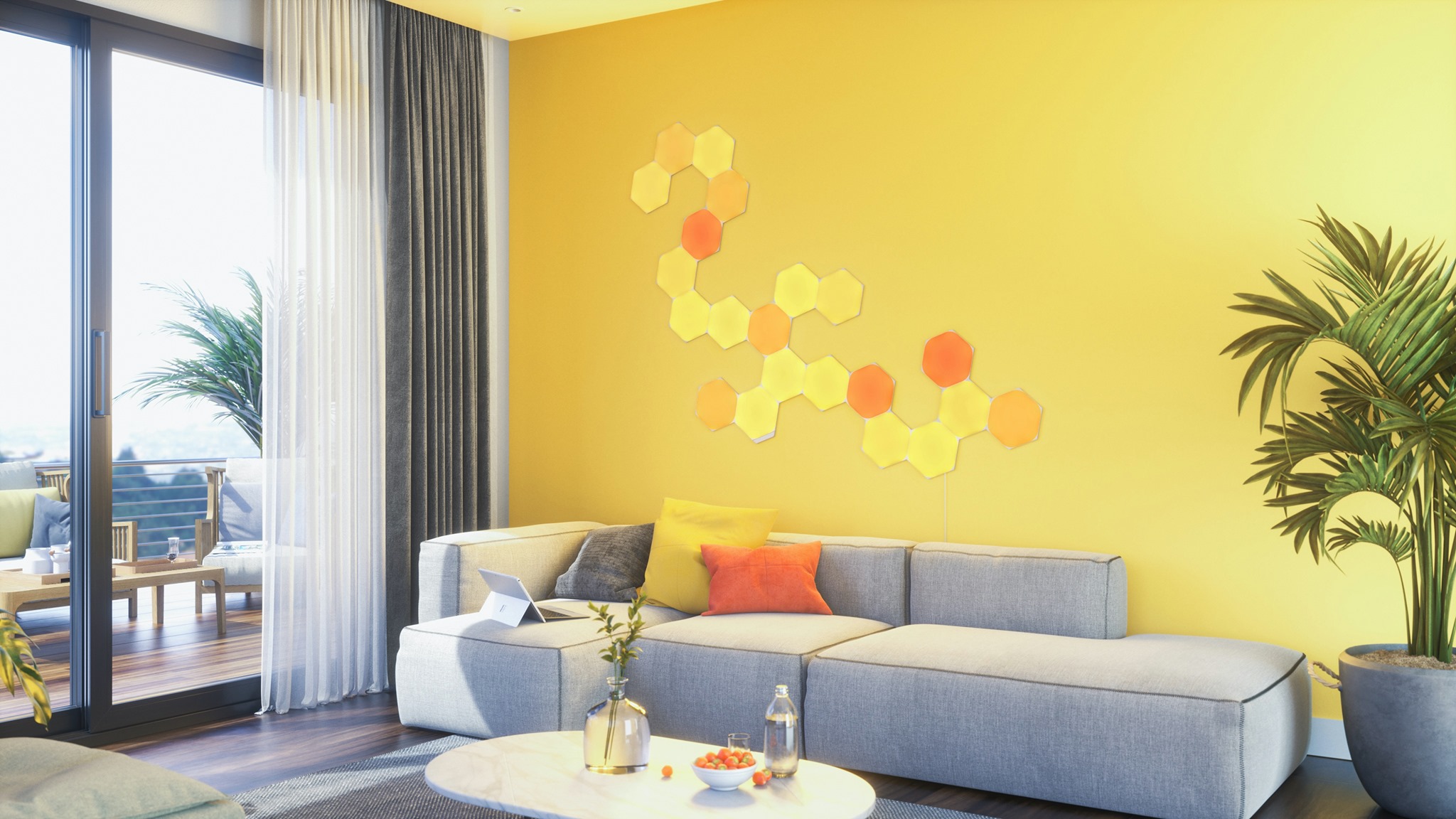 Az energiatakarékos, majd okossá váló izzók gyártásában előkelő helyen lévő Nanoleaf cég minden idők egyik legvonzóbb és a kor technikai vívmányai közül a legtöbbet magába sűrítő HomeKit világítástechnikai termékét alkotta meg a Nanoleaf Shapes termékcsalád formájában, amelynek három tagja, a hatszög alakú Hexagons Starter Kit, a háromszög alakú Triangles Starter Kit és a szintén háromszög alakú, ám aprócska Triangles Mini Starter Kit nevű, egymással összekapcsolható és együttesen használható termékei formájában, amely csomagtól függően több nagy fényerejű, érintésérzékeny LED sokszög, amelyek egy központi WiFi egység vezérlése alatt rendezhetők különféle formákba, és szerelhetőek falra, mint egyfajta high-tech csempézés. Az egység ritmus érzékelővel is kiegészül, amely révén igény esetén zenére képes reagálni, ennek megfelelően változtatja a fényeit és az ütemét.