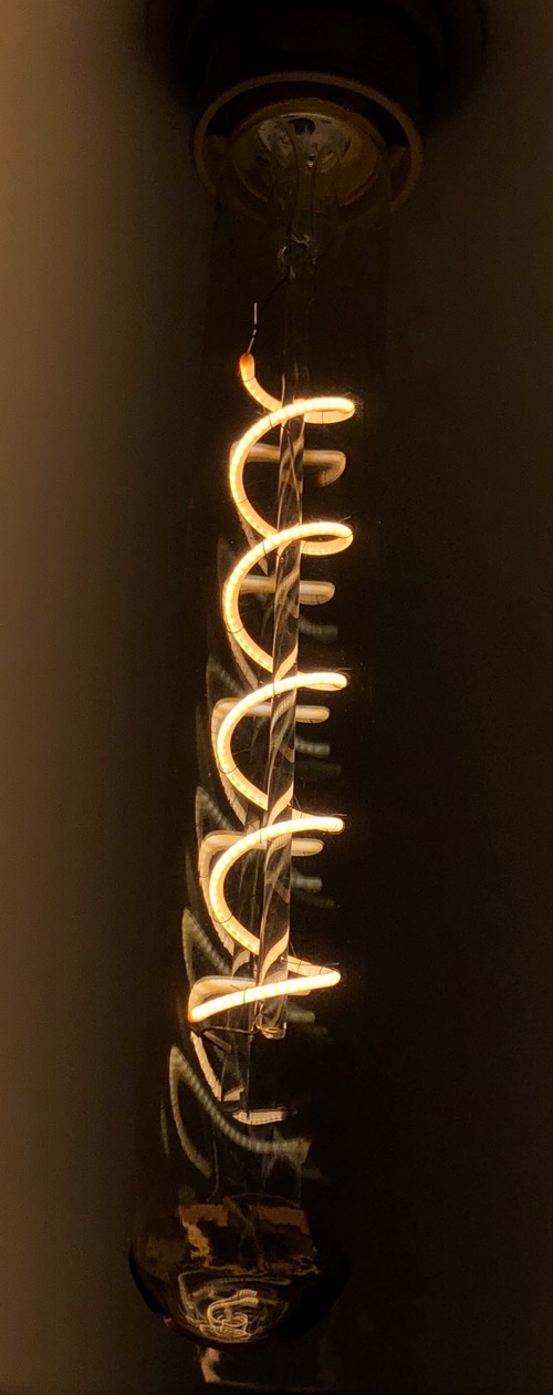 Gyönyörű design ötleteket valósíthatunk meg a cső alakzatú, ám szintén E27 foglalatba helyezhető izzóval, amelynek spirális LED szalagjai meleg fehér fénnyel árasztják el a környezetüket. Az egység 4 Watt teljesítményű, amely a hagyományos izzók világában 17 Wattnak felel meg - sorban egymás mellett tudnak komolyabb fényt adni ezek az izzók, de bárhol jól mutatnak, ahol dekorációs céllal szeretnénk nem túlzottan tolakodó, de jól érzékelhető fényt létrehozni. Az izzó 160 lumen fényerejű, A energiaosztályú termék, amely 1000 óra alatt 4 kilowattórát fogyaszt.