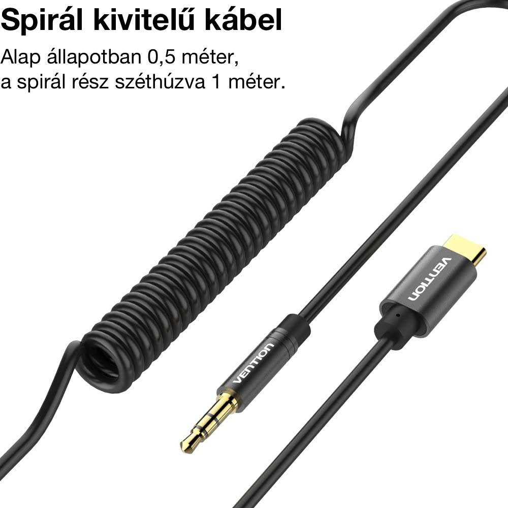 Hogy a hosszúság rugalmasan alakítható legyen, a kábel spirális kialakítású, vagyis alapból kis helyet foglal és rövid, ám a spirális rész rugalmasan nyújtható, hogy akár egy méter hosszúságot is áthidalni legyen képes.