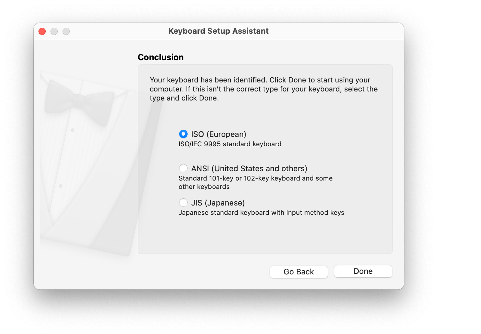 Ezt követően a macOS azonosítja, hogy ISO (European) a billentyűzet, és ennek megfelelően címzi meg a gombokat.