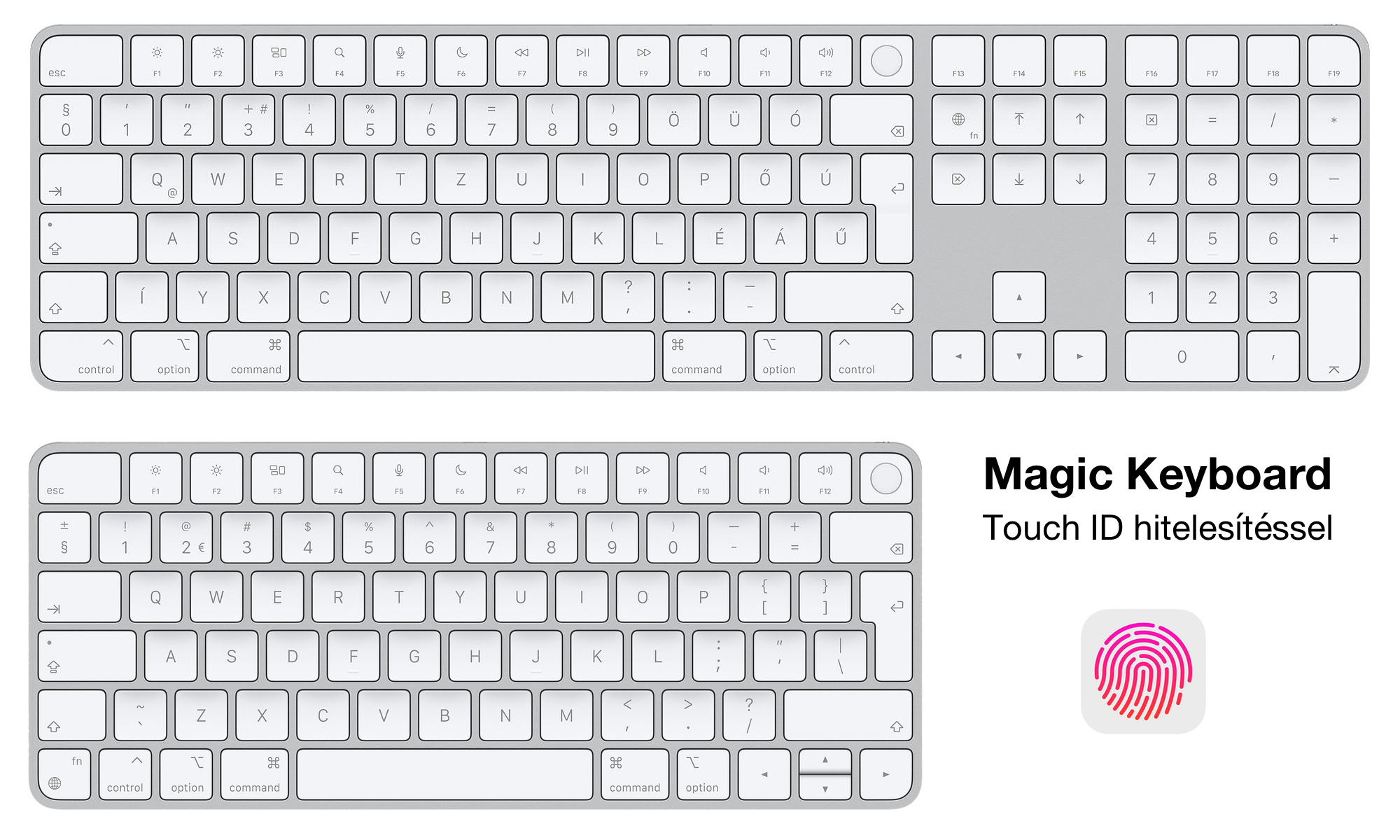 Az ergonómia terén úttörőnek nevezhető Apple méltán kedvelt vezeték nélküli billentyűzetei immáron kiegészülnek a Bluetooth 5.0 szabvány kínálta előnyökkel, illetve az Apple Silicon processzorokkal szerelt gépek felhasználói számára akár a Touch ID ujjlenyomat alapú hitelesítési képességgel is a kedvelt és védjegy ezüstszürke-hófehér színkombinációban.