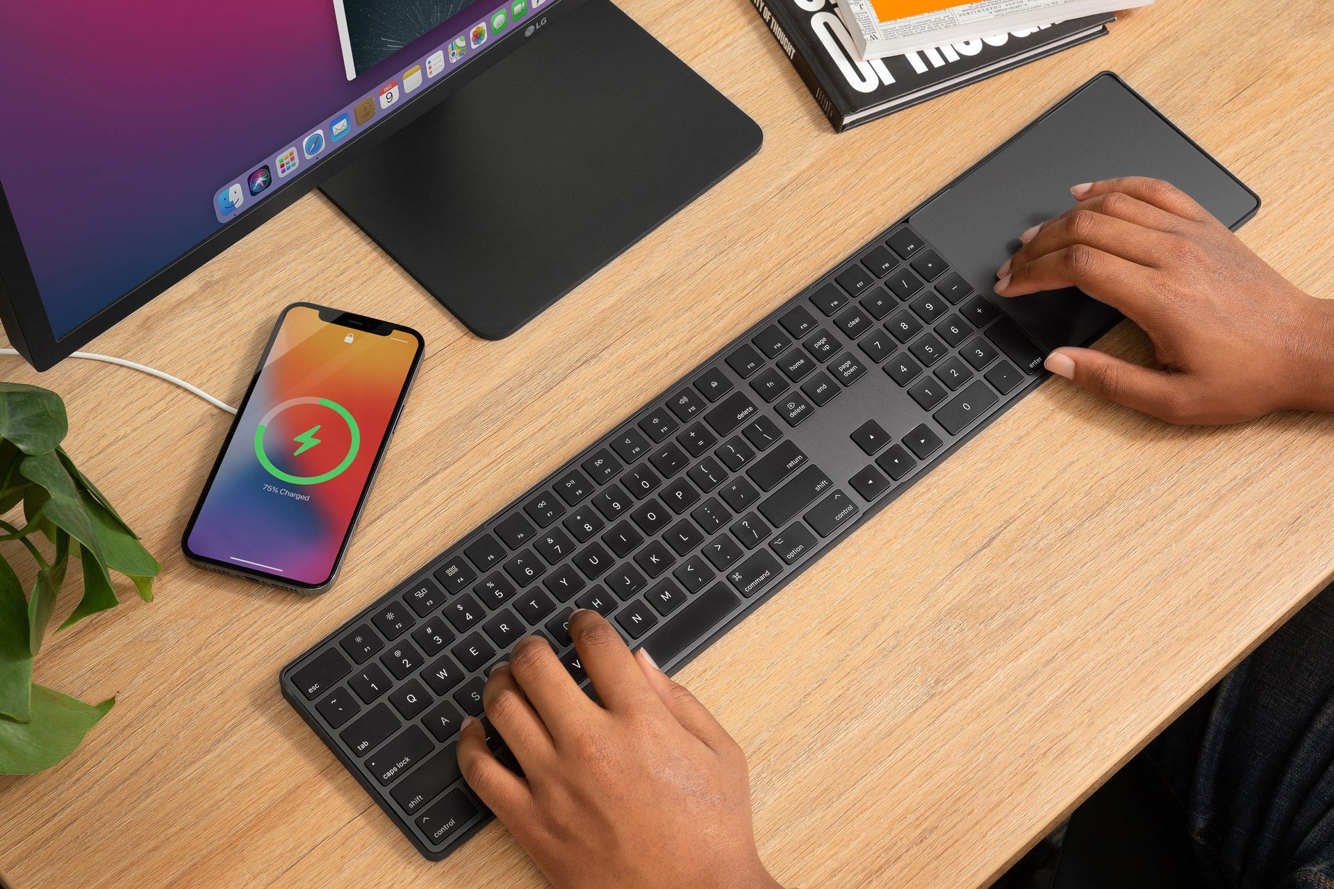 A Magic Keyboard és a Magic Trackpad 2 remekül illik egymás mellé: az Apple ügyelt arra, hogy a két termék dőlésszöge és mélysége azonos legyen. Olyannyira jól illenek egymás mellé, hogy jogos igény lehet összekapcsolni őket - ez a műfaj olyan terület, amely a kizárólag Apple kiegészítőket gyártó Twelve South cég specialitása.