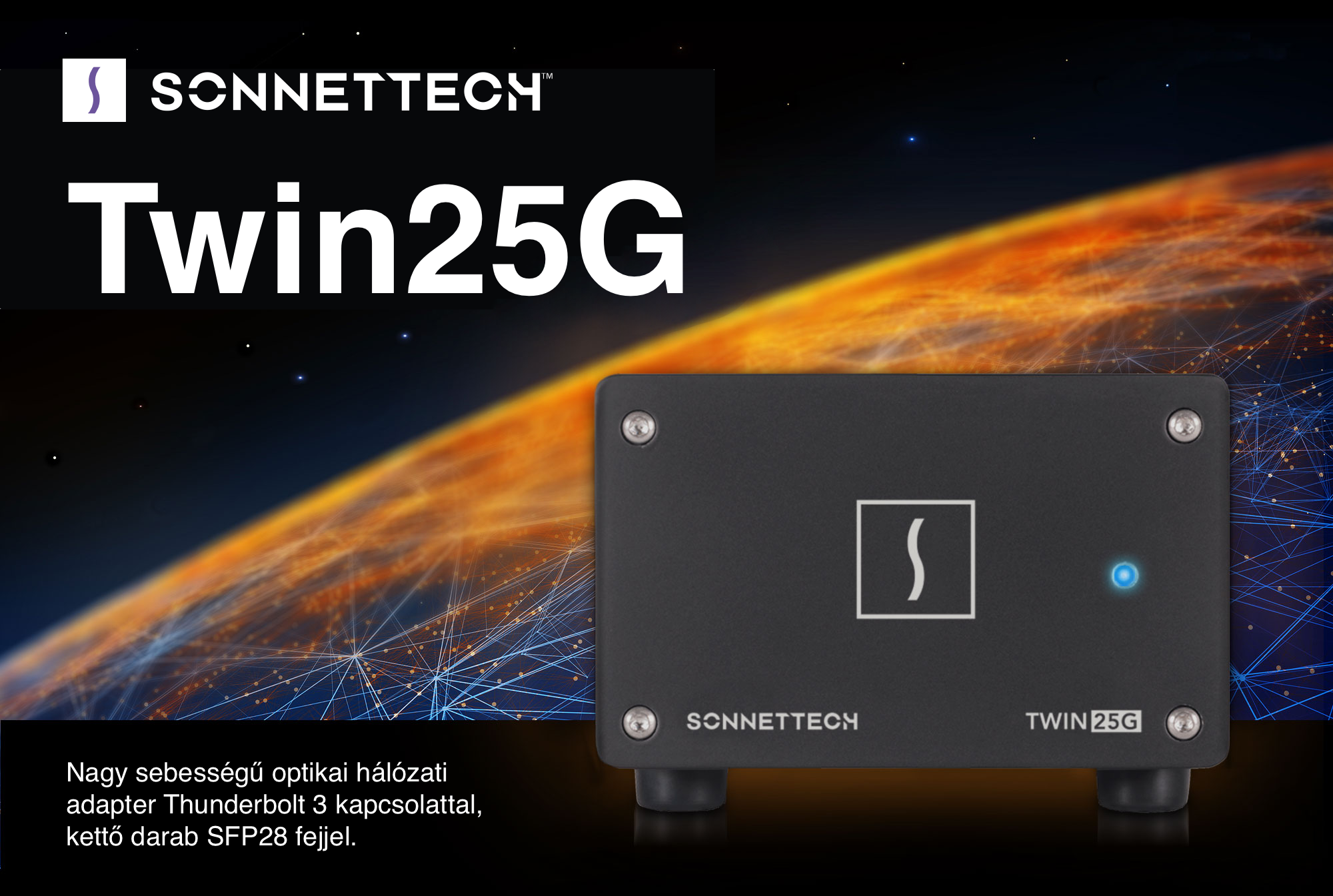 Napjaink modern, megosztott hálózati tárhelyet használó munkahelyei esetén az iparág által elért 10 Gigabites Ethernet sebesség sokáig bebetonozottnak tűnt. Az operációs rendszerek régóta lehetőséget adnak rá, az optikai hálózati hardverek pedig nem gátolják, hogy ennél nagyobb sávszélességű kapcsolatokat is építsünk, amelyhez a Sonnet az elsők között teremtette meg a szükséges hardvereket, így a külső Thunderbolt alapú 25 Gigabites Ethernet adapterét, amely ráadásul dupla csatlakozós a rugalmasabb, két hálózati irányú konfigurálhatóság és ezáltal a nagyobb átviteli sebesség érdekében.