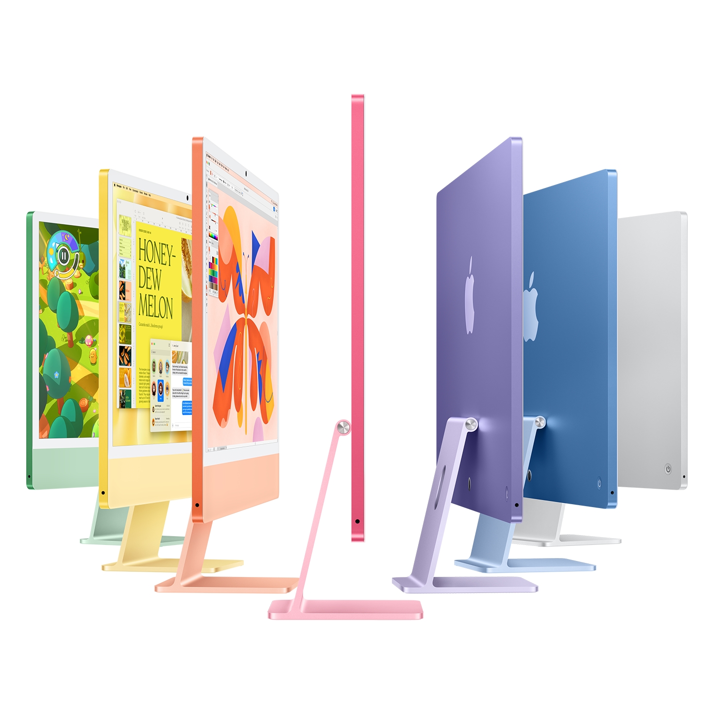 Az iMac 24” modellek hétféle színben érhetőek el - a bevezető modellek kék, zöld, rózsaszín és ezüst árnyalatokban, míg a jobban felszerelt modellek egyedi rendelésre ezen felül sárga, narancs és lila színekben is kaphatóak. A színek választási lehetősége révén egyéniségünkhöz vagy éppen vállalkozásunk arculatához illeszkedő számítógépet szerezhetünk be. Bármelyik színt is választjuk, az iMac remekül fog érvényesülni, mivel az Apple rendkívül ízléses fényes hátlapot alkotott a mattra csiszolt talp és előlapi szélek mellé. A gép teste pedig csak 11,5 milliméter vékony, vagyis oldalról gyakorlatilag eltűnik.