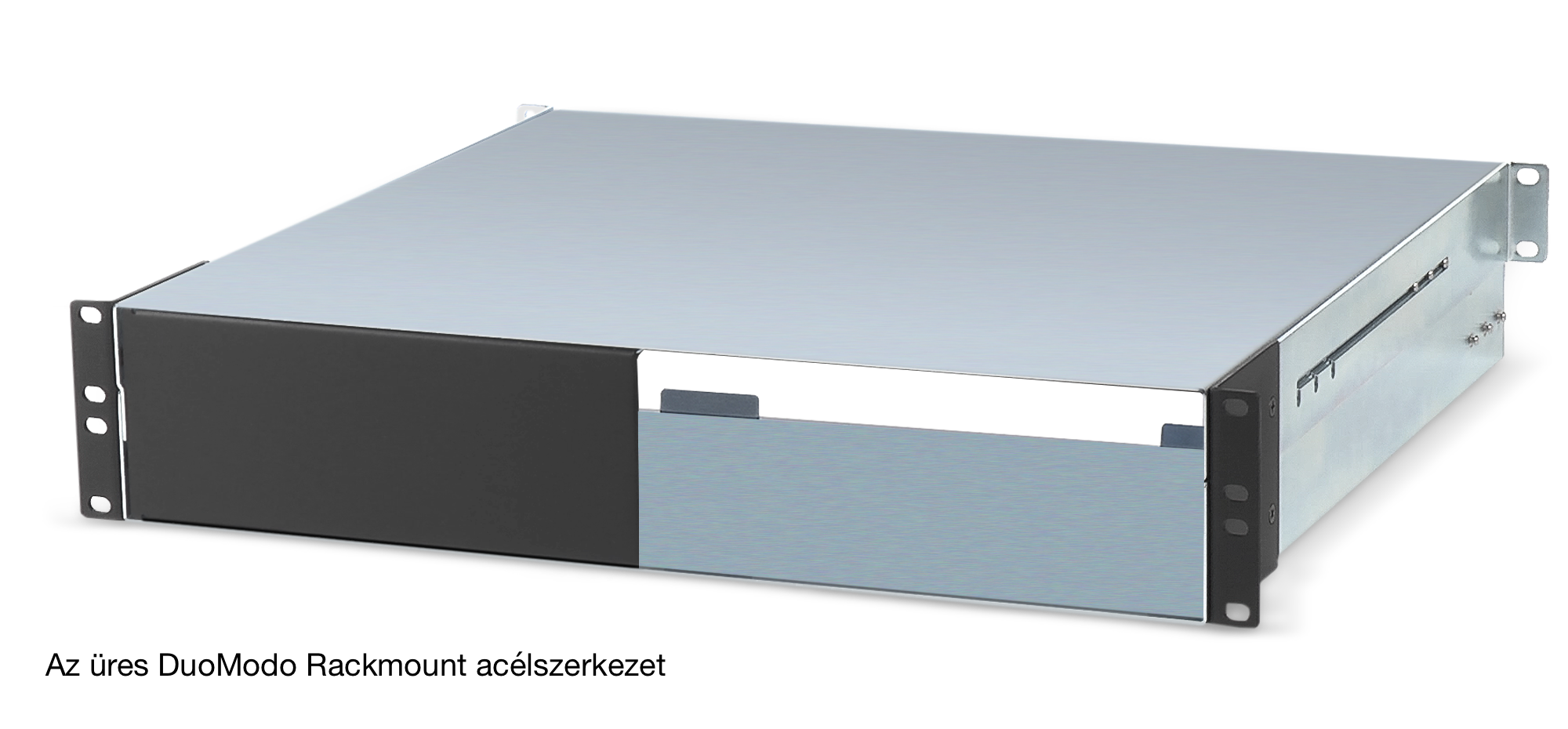 Ez a termék elérhető eleve rack kivitelbe szerelt változatban, egy üres modul helyével, illetve meglévő DuoModo 2U fiókunkba helyezhető modul kivitelben is.