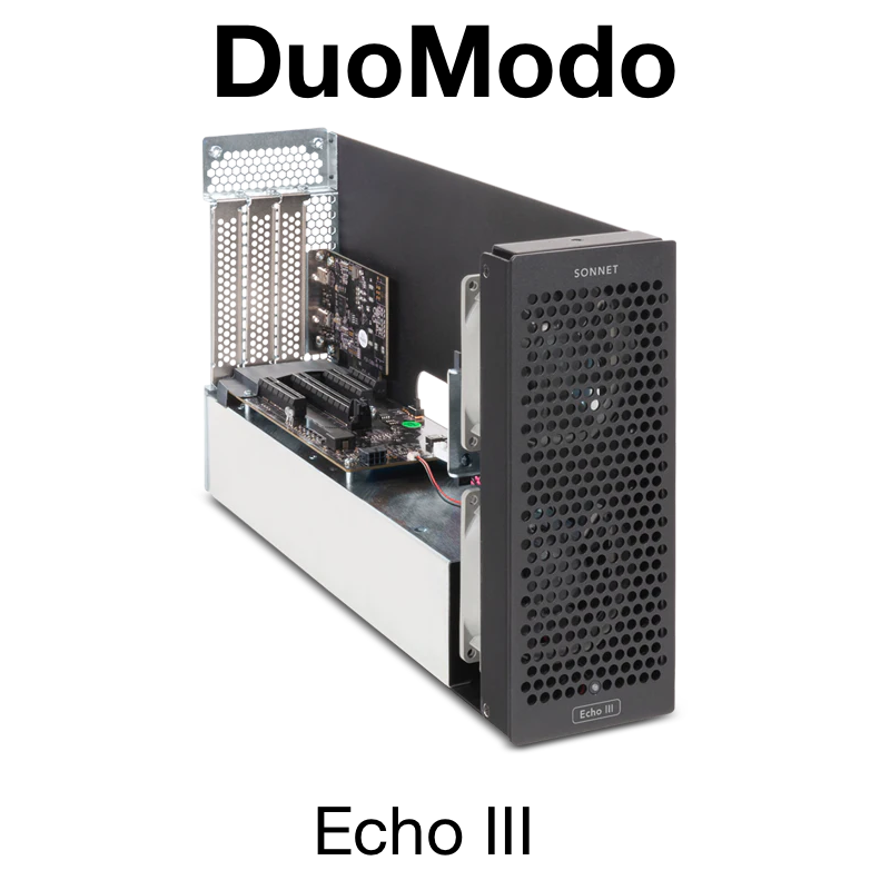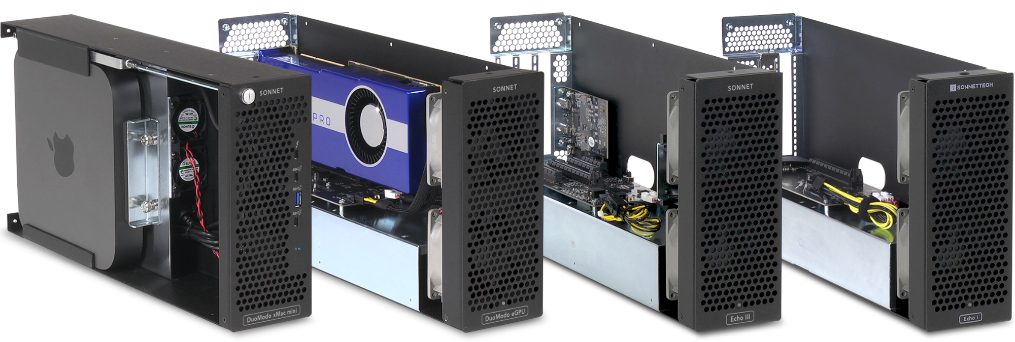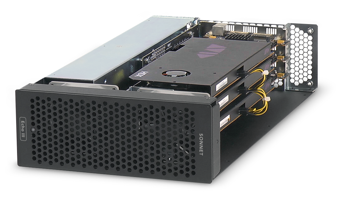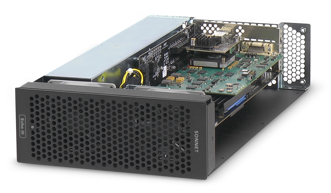 Az asztali munkaállomások, mint a csúcskategóriás Mac Pro esetén alapvető képesség, hogy számos PCI Express bővítőhely rendelkezésre áll, amelyekkel fokozhatjuk, bővíthetjük a számítógépek funkcióit. Az Apple termékvonalán azonban számos olyan asztali és mobil számítógép is van, ahol fizikailag nem lehetséges a bővítőkártyák alkalmazása, így aztán szükség van egy másfajta megoldásra: e célra születtek meg a Sonnet Echo termékvonal tagjai, amelyek csúcsát a III számmal jelzett konstrukció jelenti, amely 3 darab PCI Express 3.0 kártya befogadására alkalmas, függőleges és rack szekrényre optimalizált vízszintes kivitelben is elérhető egységekkel.