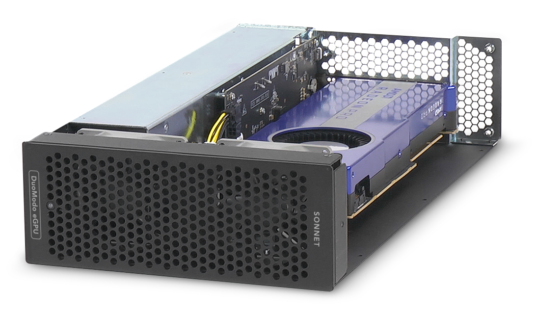 A Sonnettech a Thunderbolt technológia hajnalán már alkotott olyan külső foglalatokat, amelyekbe számos extra funkciót zsúfolhattunk, és egészíthettük ki olyan tudással egy iMac, Mac mini vagy MacBook Pro képességeit, amely korábban csak a belső bővítést kínáló Mac Pro modelleknél volt lehetséges. Ennek a termékkörnek a fejlődéseként jelent meg a DuoModo család, amely a 19 hüvelykes szélességű rack fiók kapcsán jutott el arra a felismerésre, hogy tulajdonképpen két modul is befér egy 2U magasságú fiókba, vagyis miért ne lehetne egységnyi helyre még több tudást sűríteni a felhasználó igényei szerint!