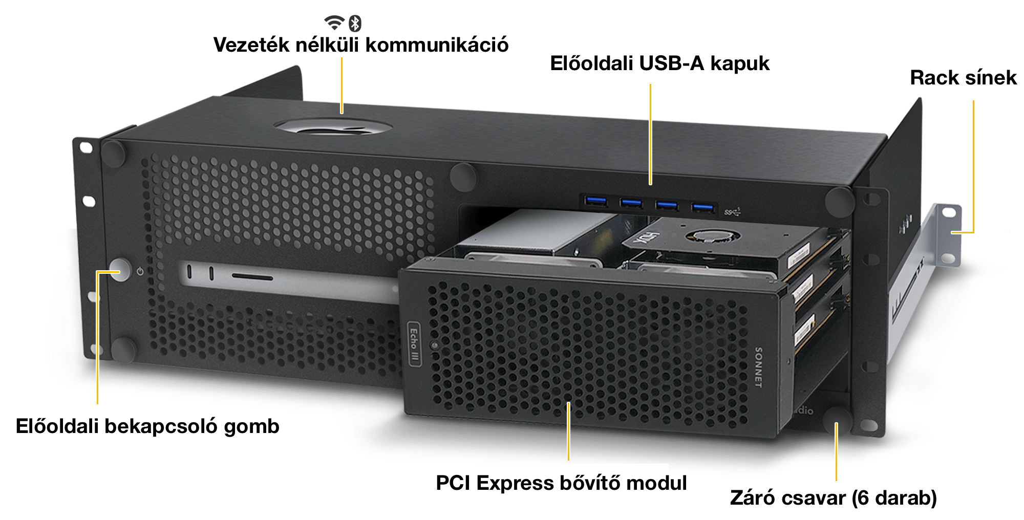 Ezen megfontolásból a Sonnet például kínál előre konfigurált DuoModo Rackmount terméket xMac mini modullal és Echo III modullal szerelve, így a Mac mini mellé akár három PCI Express kártyát is csatlakoztathatunk.
