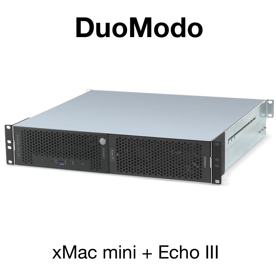 A termék mellé a DuoModo házba helyezhető egy xMac mini modul, vagy éppen beépíthető akár egy Sonnet xMac Studio szerkezetbe is, ahol egy Mac Studio egységet egészíthet ki 3U magassági formátumban három darab PCI Express kártyával.