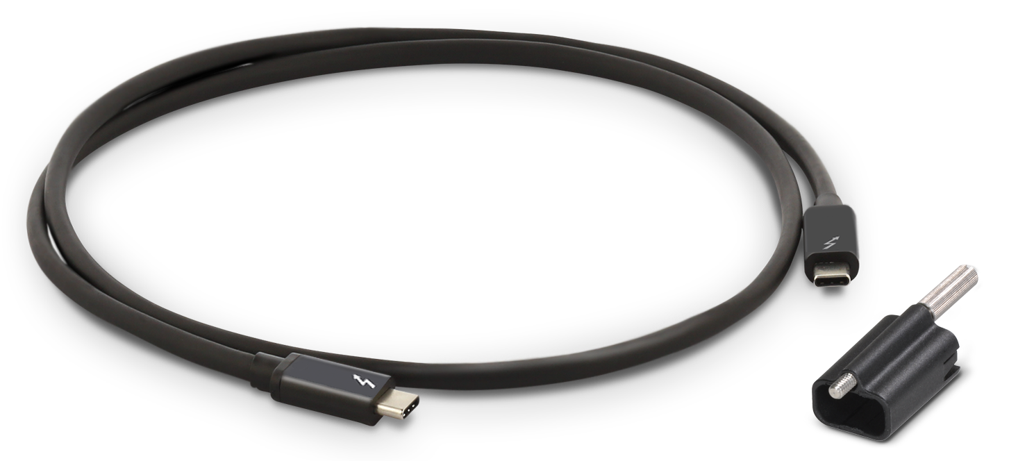 A Sonnettech gyárilag 70 centiméteres Thunderbolt 3 kábelt biztosít a termékhez, vagyis az kicsit távolabb is tehető a géptől, és az iMac 24” esetén is kellően rugalmas elhelyezési távolságot biztosít. A 2750 MB/s sávszélességet és 100 Watt tápellátást biztosító kábel ráadásul kiegészült a Sonnettech ThunderLok 3 kábelrögzítő megoldásával, amely révén a kártyák véletlenszerű kirántásának kockázata kerülhető el.