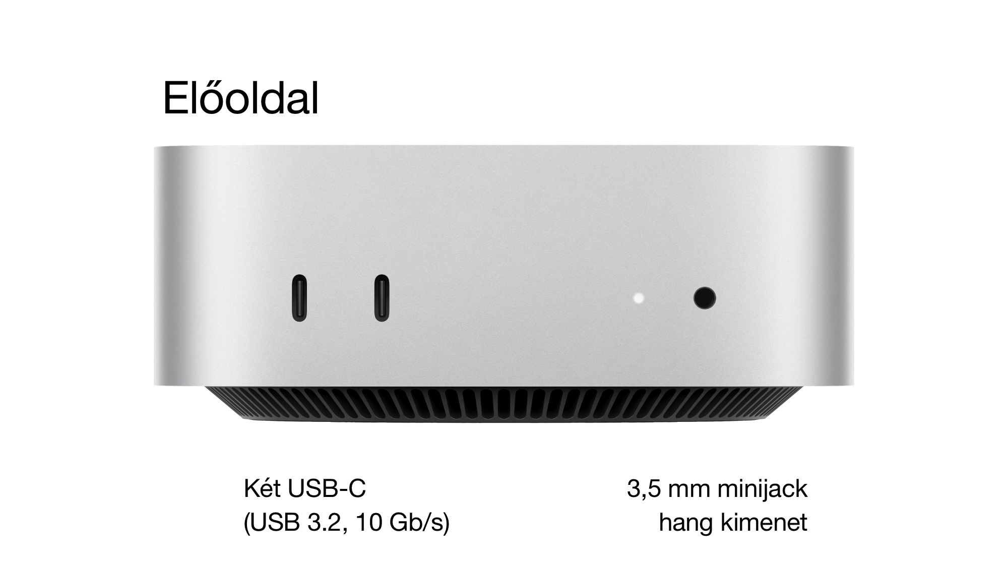 A Mac mini 2024. októberében bemutatott frissítése a teljes Mac élményvilág maga, egy olyan befektetés, amely több évre szóló élményt és használati értéket nyújt a tulajdonosának. A Mac mini új teljesítmény fokozatra kapcsolt, és soha eddig nem látott képességeket biztosít a kor legmodernebb csatlakozó felületeivel, gyors tárhellyel és memóriával, illetve Apple Silicon alapon, tízmagos M4 processzorral, vagy a csúcskategóriában tízmagos vagy 12-magos M4 Pro erőforrással. Ezen a gépen mutatkozik be elsőként a Thunderbolt 5 kapu.