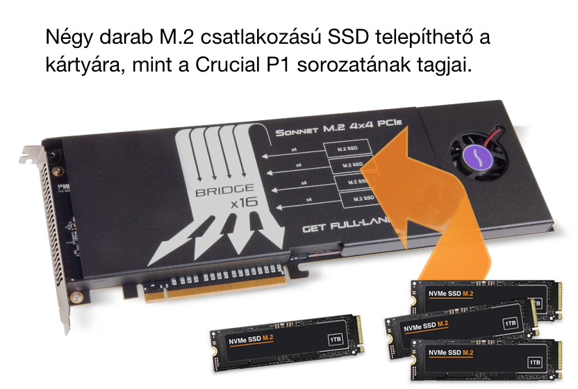 Az iJoe.hu kínálatában számos hasznos PCI Express kártya megtalálható népszerű gyártók repertoárjából. Ezek közül alapvető a Sonnet Technologies, amely megannyi hasznos kártyát kínál a felhasználók számára. Ilyen megoldás például a Sonnet M.2 4x4 PCIe kártya, amelyre M.2 szabványú SSD-ket építhetünk, és akár 4 TB további ultragyors tárhellyel bővíthetjük a gépet akár RAID topológiák szerint, vagy rendszerindítási képességgel.