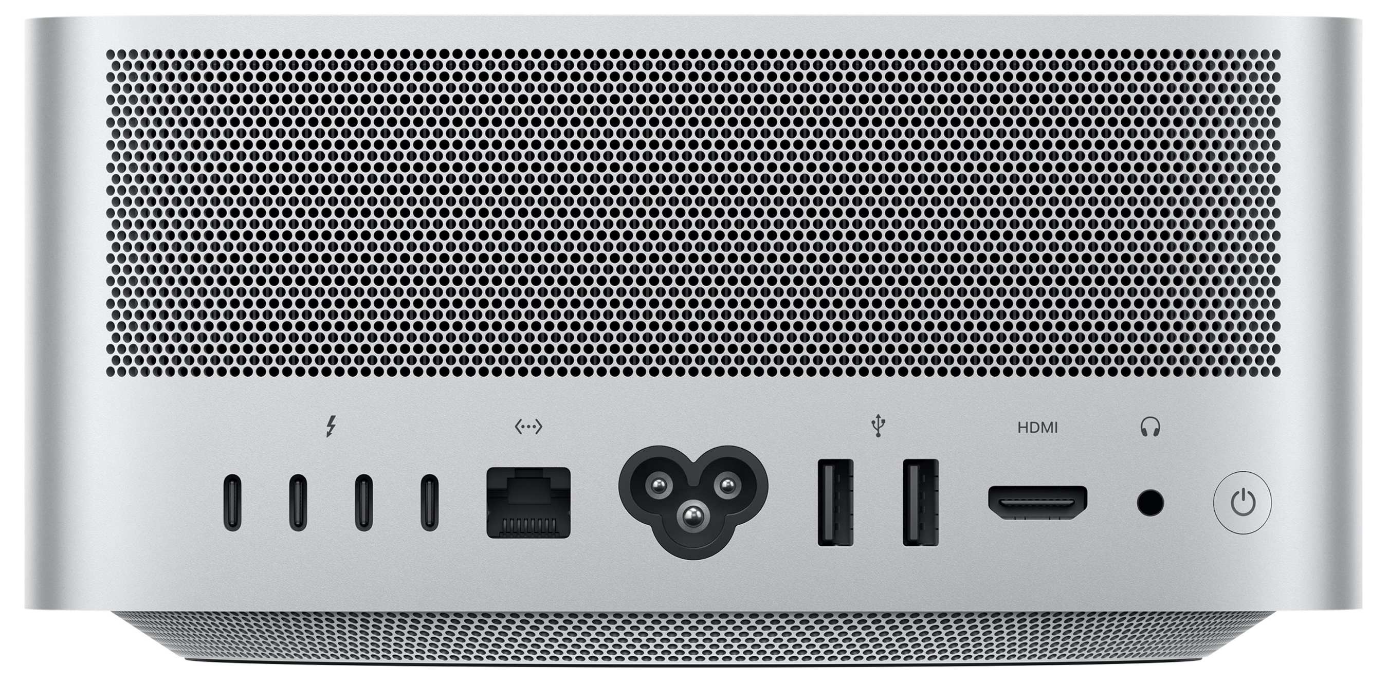 Az Apple a felhasználói igényekhez igazodva számos hasznos csatlakozóval is ellátta a gépet: a hátoldalon négy darab, egyenként 80 Gb/s sebességű Thunderbolt 5 / USB4 kapu található, míg a gép elején az M4 Max processzor esetén két sima USB4, az M3 Ultra processzor esetén két darab Thunderbolt 5 / USB4 kapu található. Ezek mindegyike USB-C formátumú. Ezek 80 Gb/s sávszélességét videó kapcsolat esetén képesek 120 Gb/s-re emelni annak érdekében, hogy az így elérhető 40 Gb/s a kijelző meghajtására dedikáltan legyen felhasználva.