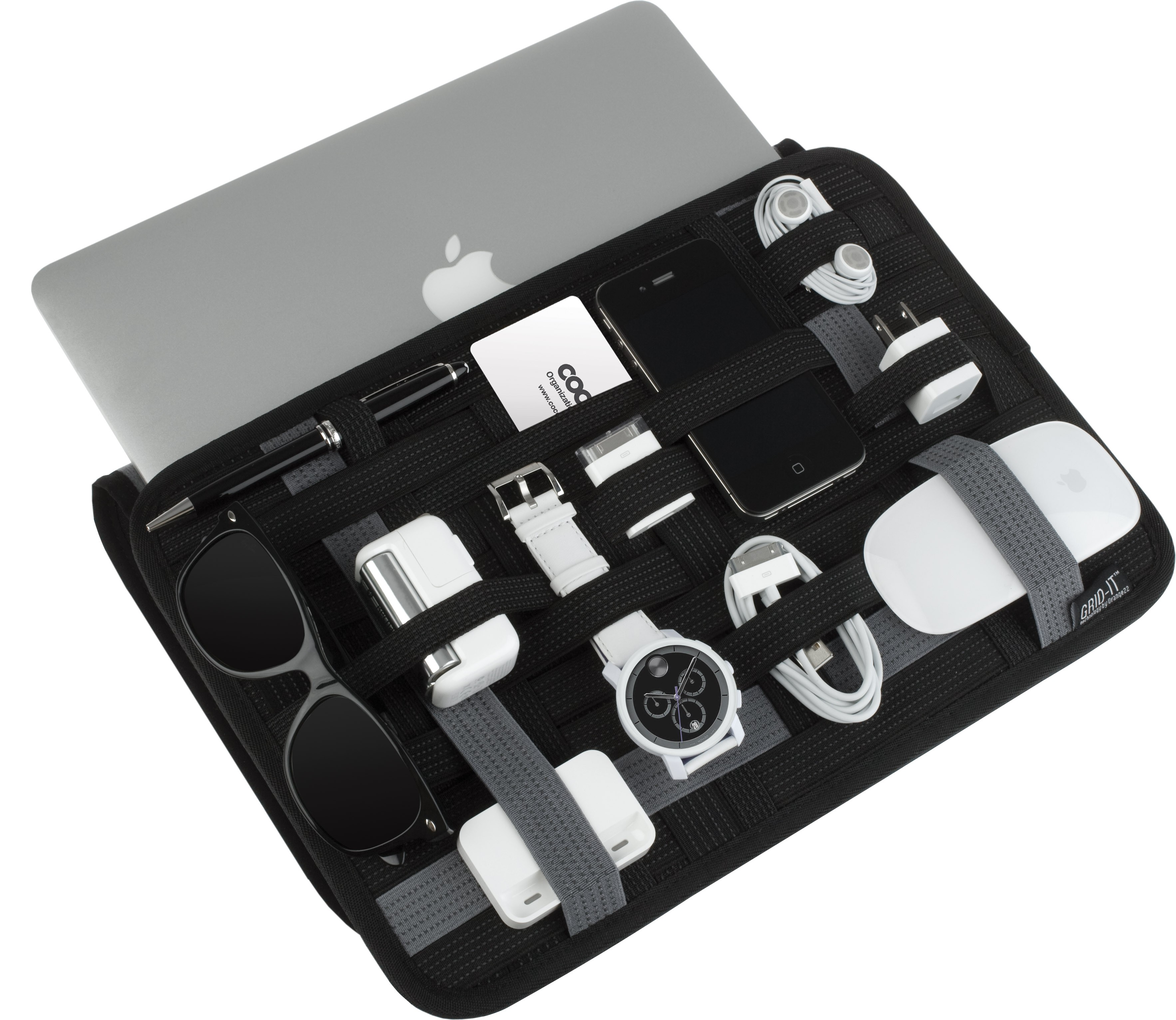 A Cocoon cég védjegye az intelligens elrendezési lehetőségek kitűnő megvalósítása a termékeiben: a GRID-IT! márkanevű konstrukció lényege, hogy számos rugalmas pánt szövi át a tokok egy oldalát vagy a táska egy-egy belső rekeszét, és ide egyszerűen beszoríthatunk különféle kiegészítőket, kábeleket, egeret, külső meghajtót, töltőt, adaptert.