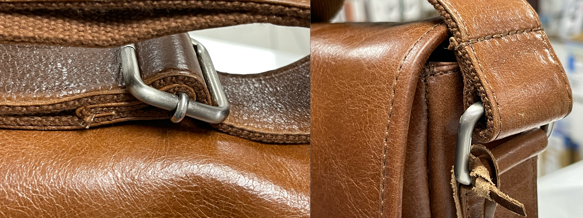 A zárt fémpánttal gyárilag rögzített vállpánt természetesen szintén bőr alapanyagú, rugalmas állítását szintén fémcsatt teszi lehetővé. Finoman párnázott kivitele révén nem nyomja kellemetlenül a vállunkat hosszabb viselés során sem.