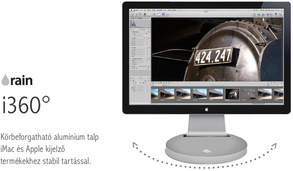 A Rain Design egyik kiváló, alumínium alapú terméke az i360° nevű fordítókorongja, amely hasonló elven működik, mint a vasúti fűtőházak korongjai: a stabilan elhelyezett tárgyat képes körbeforgatni, így nem szükséges az asztalt karcolva, nehézkesen mozgatni az iMac, Apple Cinema Display, LED Cinema Display és Apple Thunderbolt Display modelleket.