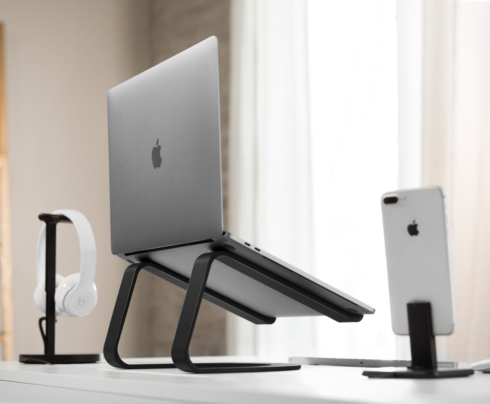 Az állvány használata révén a MacBook Air vagy MacBook Pro nem csak elhelyezkedik az asztalunkon, hanem lebeg fölötte bámulatos letisztultsággal. A gép alsó részének 70%-át szabadon éri a levegő, ezáltal az eszköz szellőzése ideálisabbá válik, a kijelző figyeléséhez pedig nem kell lehajolnunk, hanem kényelmesen tarthatjuk a fejünket, kímélve a nyakunkat a munka vagy szórakozás közben.