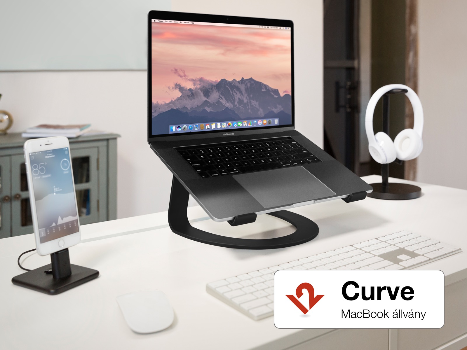 Az amerikai Twelve South cég számos látványos állványt készített az elmúlt években, amelyek között vannak olyanok, amelyek a külső billentyűzettel való használatot támogatják - ilyen a HiRise és a GhostStand -, illetve olyanok is, amelyek a Mac saját billentyűzetének használatára adnak módot - ilyen a ParcSlope. A gyártó legújabb terméke, a gyönyörű fekete színű Curve az előbbi kategóriába sorolható, különlegessége pedig, hogy egyetlen alumínium darab speciálisan formált példányaként ipari remekműnek számít.