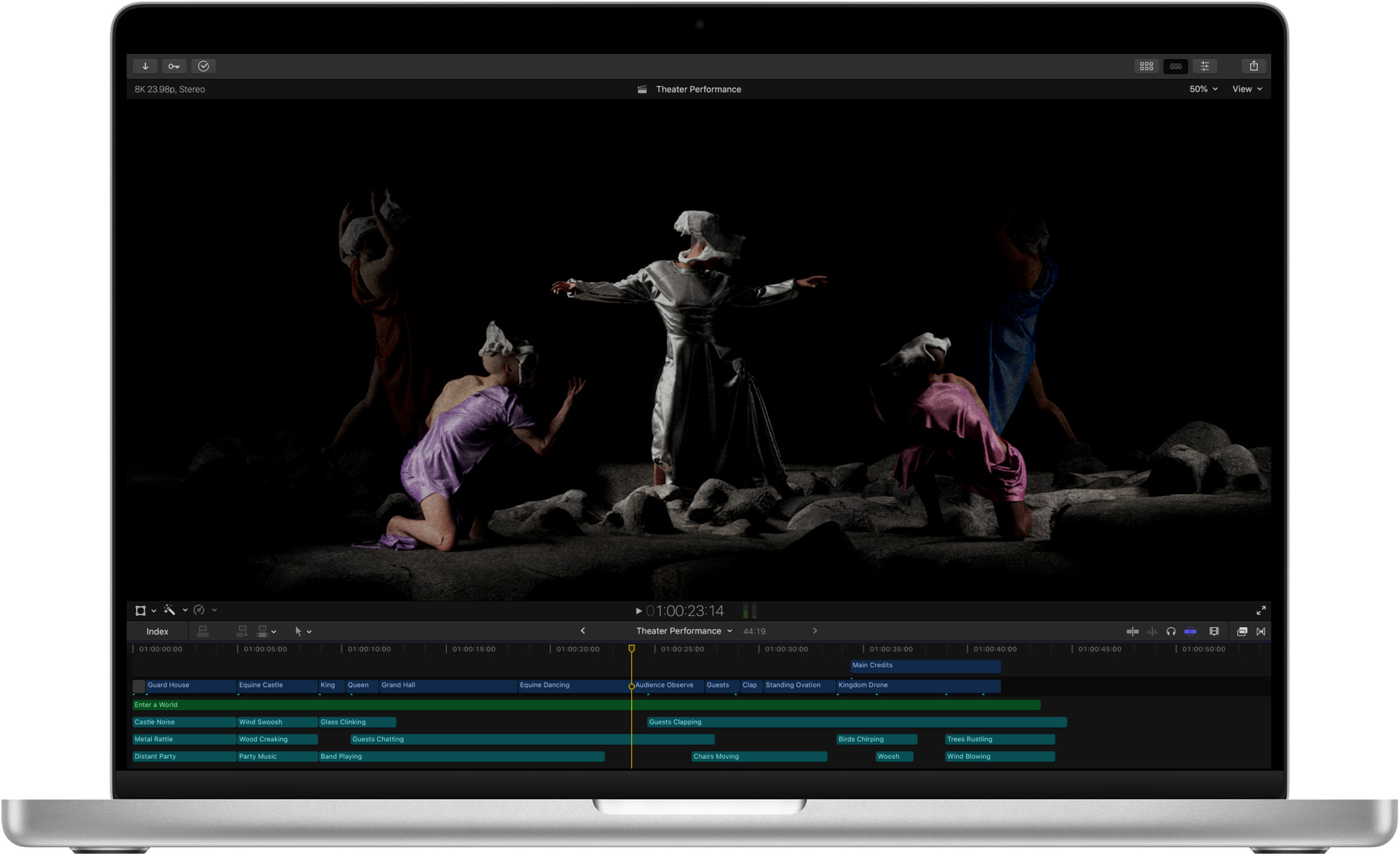 A Mac rendkívül hatékonyan használja a memóriát, köszönhetően többek között az operációs rendszer intelligens funkcióinak, a MacBook Pro termékcsalád azonban komoly kreatív munkára is alkalmas, és aki például a Motion programot használja, tisztában van azzal, hogy egy nagy felbontású produkció gyors visszajátszásához szükséges RAM Preview létrehozásának elengedhetetlen kulcsa, hogy nagy mennyiségű szabad memória álljon rendelkezésre. Itt jelent mérhetetlen előnyt a 128 GB-os opció az M4 Max modellek esetén, amely révén összetett, intenzív erőforrás igényű produkciókat is a memóriába írhatjuk, hogy lényegesen gyorsabban tudjuk visszajátszani, és ne kelljen újra és újra a processzornak élőben kiszámolnia a megjelenítendő tartalmat.