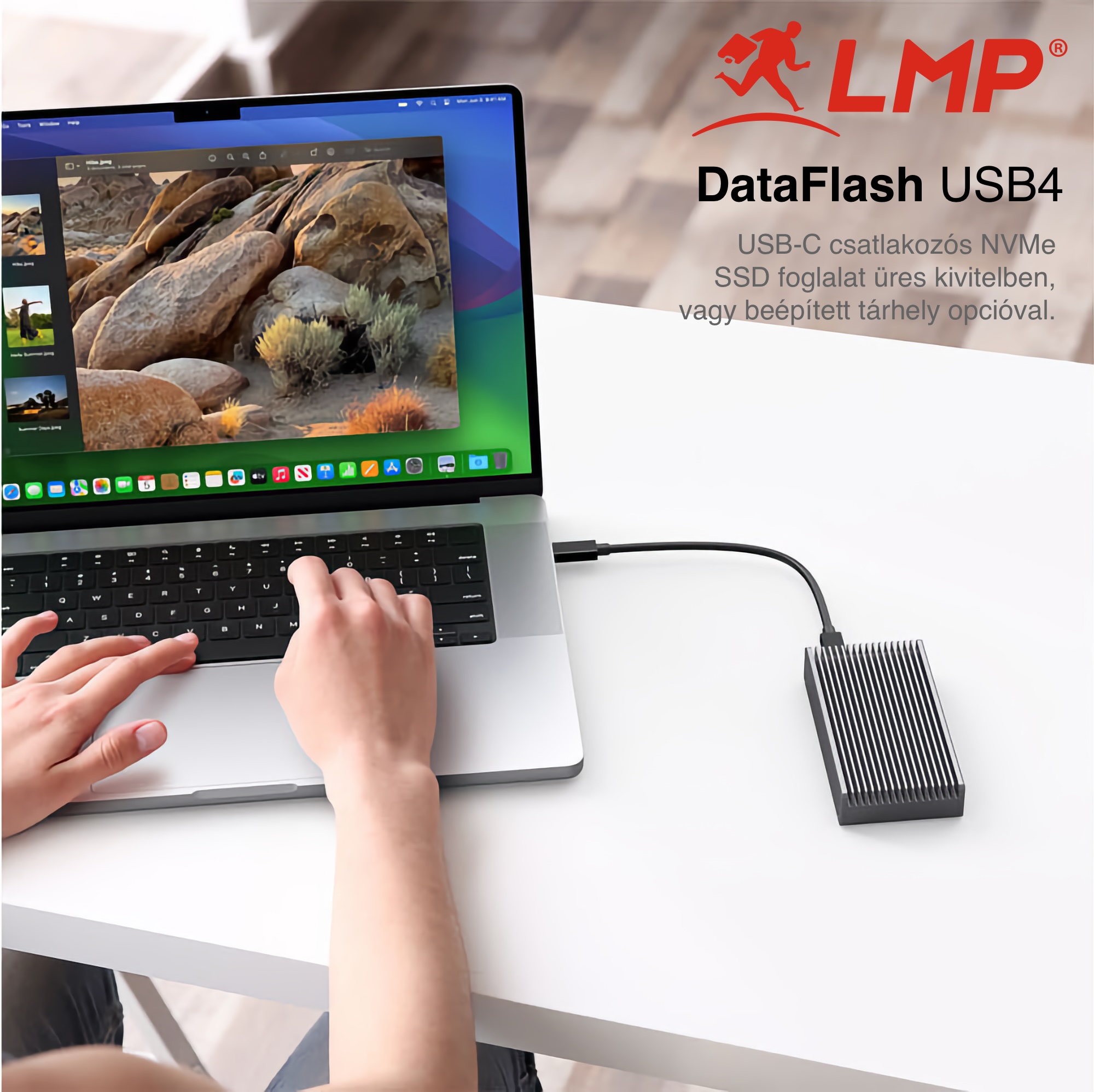 A Cropmark AG költséghatékony, viszonylag kis méretű és ígéretes képességű külső házat alkotott az LMP DataFlash USB4 eszköz formájában, amelynek célja egy gyors M.2 NVMe SSD meghajtó befogadása, és USB-C kapcsolaton keresztül a Mac-hez vagy iPad Pro eszközhöz csatlakoztatása. A gyártó egyaránt kínál üres kivitelt a házból, valamint Kingston SSD-vel előre konfigurált verziókat is.