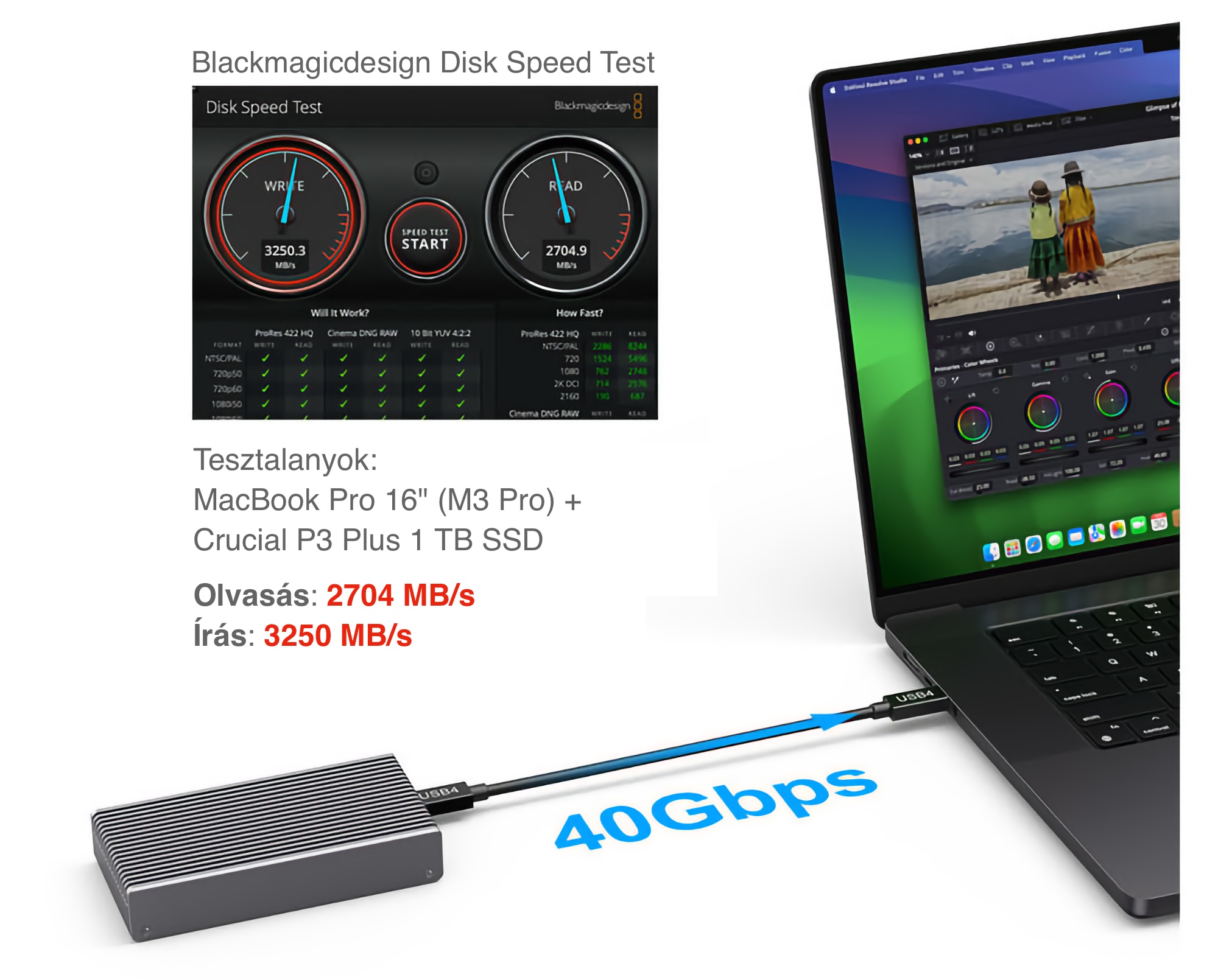 A termék hivatalosan a PCIe Gen4 M.2 NVMe, más néven NVMe 1.4 szabványú meghajtókat támogatja. Ez általában azt jelenti, hogy a régebbi, PCIe 3 technológiás megoldások is működnek benne, de kizárólag a szabványos M.2 csatolós termékek, vagyis az Apple által a régebbi gépeiben alkalmazott, nem szabványos megoldások nem használhatóak.