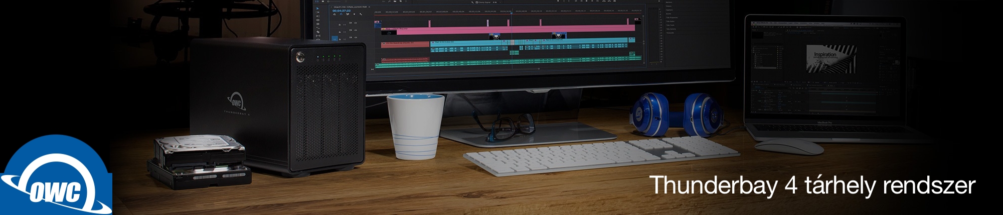 Az amerikai Other World Computing cég számos professzionális termékkel szolgálja a mozgóképes utómunka vagy a profi fényképészet területét. Mobil adathordozóik mellett kínálnak egy olyan terméket is, amely inkább a stúdiókban lehet hasznos, mégpedig egy Thunderbolt házat, amely nem tartalmaz gyárilag beépített lemezeket, hanem a felhasználóra bízza, hogy mit és mekkora kapacitásban szeretne behelyezni: az OWC ThunderBay 4 egy négy lemez befogadására alkalmas, Thunderbolt 3 kapcsolattal kommunikáló RAID tárhely rendszer, amely ultragyors és biztonságos adattárolási megoldást kínál olyan környezetekben, ahol elképesztő mennyiségű adatot kell feldolgozni és gyorsan elérni.