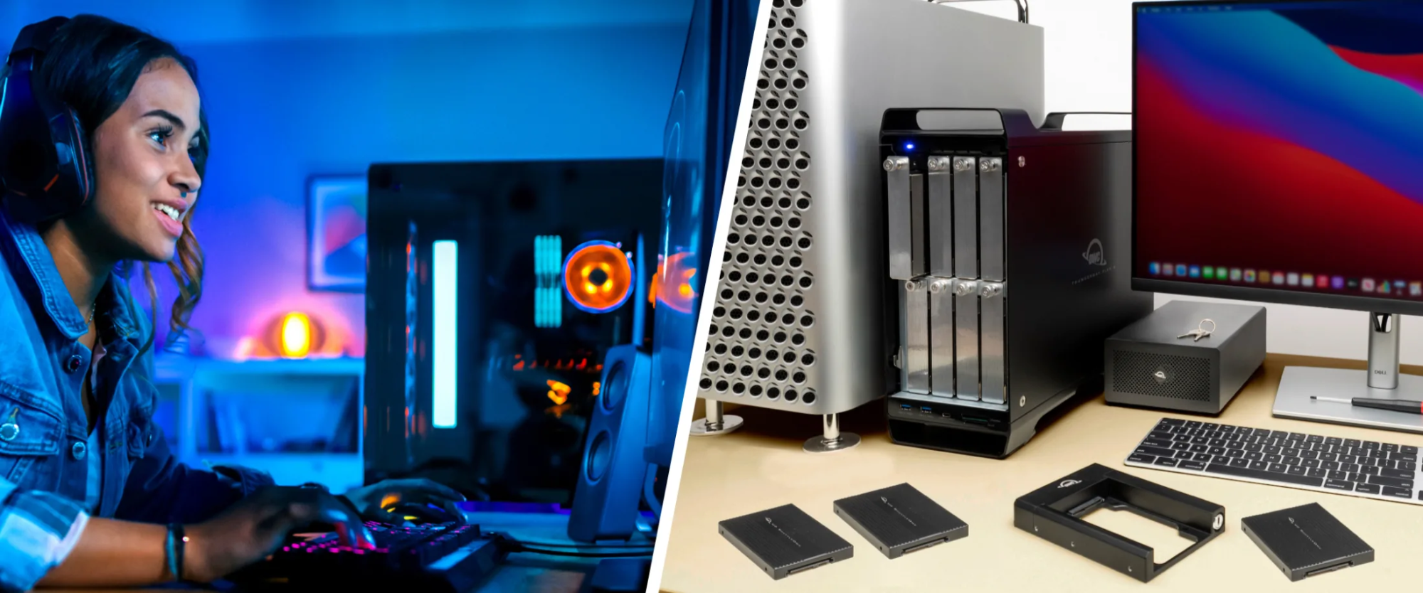 Az OWC e területen alkotott kiváló és rendkívül költséghatékony terméket, amikor bemutatta az OWC U2 ShuttleOne megoldást, amely egy 3,5 hüvelykes, U.2 csatlakozó felülettel ellátott kazetta, amelybe egy darab M.2 csatlakozós NVMe SSD helyezhető, így az olcsóbb M.2 csatolós SSD beépíthetővé válik U.2 házba. Vagyis nem kell méregdrága U.2 SSD-t vásárolnunk, hanem normál kereskedelmi forgalomban lévő, jóval kedvezőbb árú szilárdtest meghajtó modullal alakíthatjuk ki a saját U.2 tárhelyünket, amelyet aztán beilleszthetünk egy U.2 csatlakozós befogadó egységbe - akár az OWC saját kínálatában lévő Thunderbay Flex 8 külső házba, vagy a szerver világ megjelenéséhez igazodó Flex 1U4 eszközbe.
