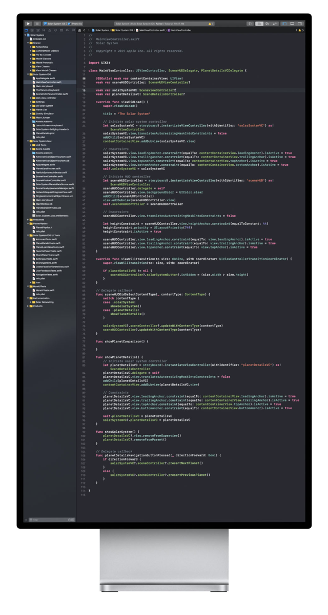 Az Apple a Pro Display XDR termékhez gyárilag nem biztosít talpat, vagyis valamilyen rögzítő megoldást vásárolnunk kell hozzá - ez lehet VESA adapter vagy az Apple saját Pro Stand nevű állványa. Ez az állvány elképesztően stabil, és úgy teszi lehetővé a kijelző mozgatását 12 centiméteres sávon belül, hogy közben a dőlésszöget is módosíthatjuk. A kijelző ráadásul 90°-ban elforgatható, így a programozók például az Xcode felületén hosszas kódsorokat is át tudnak látni a 6K felbontású monitoron.