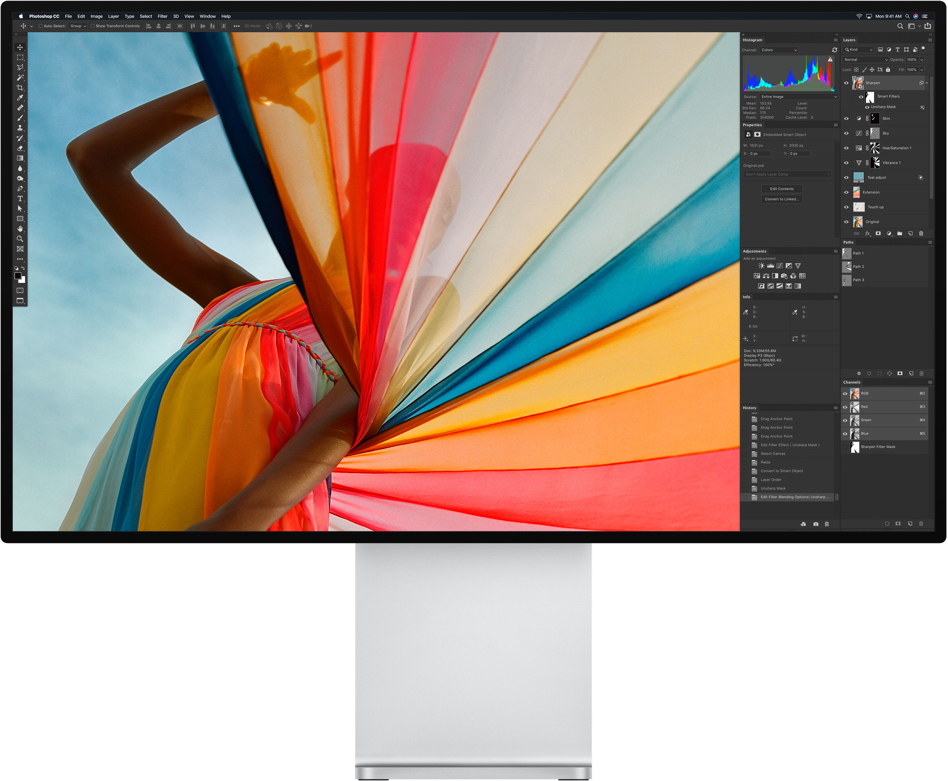 A Pro Display XDR hatalmas méretű: 32 hüvelykes az átlója, felbontása pedig 6016 x 3384 képpont, vagyis 6K felbontású Retina kijelzőről van szó. A képpont sűrűség 218 ppi, azaz nagyjából a MacBook Pro modelleknél megszokott sűrűségű. A kijelző különlegessége, hogy állandó fényereje 1000 nit, de igény esetén képes 1600 nitre növelni a fényerejét bizonyos használati módoknál. 1.000.000:1 kontrasztaránya révén pedig páratlanul jók a fekete színei, és extra nagy a betekintési szöge is. Az egység emellett gazdag színmegjelenítési képességgel rendelkezik - az Apple termékeknél már megszokott P3 skála szerint. És elképesztően magas dinamikatartománya van, amely révén az Apple szerénytelenül az iparág legjobb professzionális kijelzőjének nevezi.