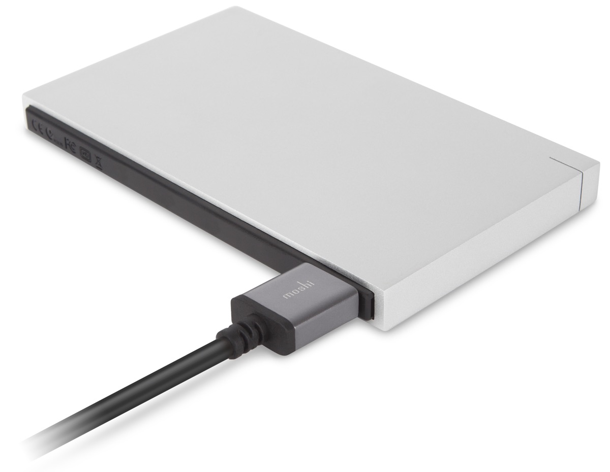A Moshi a SuperSpeed USB 3.0 szabvány maximumát nyújtó 5 Gb/s elméleti átviteli sebességű kábelt kínál, amelynek végei a megszokott módon eloxált alumínium kivitelűek, és a hajlítási pontokon meg vannak erősítve, hogy kevésbé legyenek sérülékenyek.