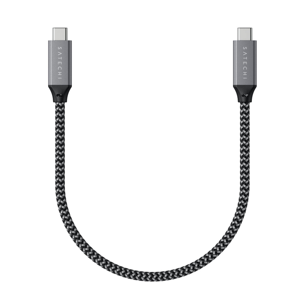 A Satechi USB4 kábelei kétféle hosszúságban érhetőek el: 25 centiméteres és 80 centiméteres variációkban. Az elegáns sötétszürke szövetkábel alumínium fejekben végződik, amelyek a hajlatoknál meg vannak erősítve a tartósság érdekében.