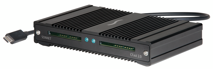 A Sonnet Technologies számára otthonos terület a professzionális videózás világa, így nem meglepő, hogy a cég elsőként mutatta be a MacBook Pro felhasználók igényeihez igazodó Thunderbolt 3 kapuval szerelt memóriakártya olvasóját a profi mozikamerák által használt CFast 2.0 kártyák kezeléséhez. A korábbi Compact Flash szabvány továbbfejlesztett változata azonos méretű, mint elődje volt, ám drámaian megnövelt olvasási sebességeket biztosít: kártyánként akár 525 MB/s, együtt a két kártya esetén pedig 1000 MB/s sebességgel másolhatjuk be a kreatív tartalmakat, vágatlan forrásanyagot.