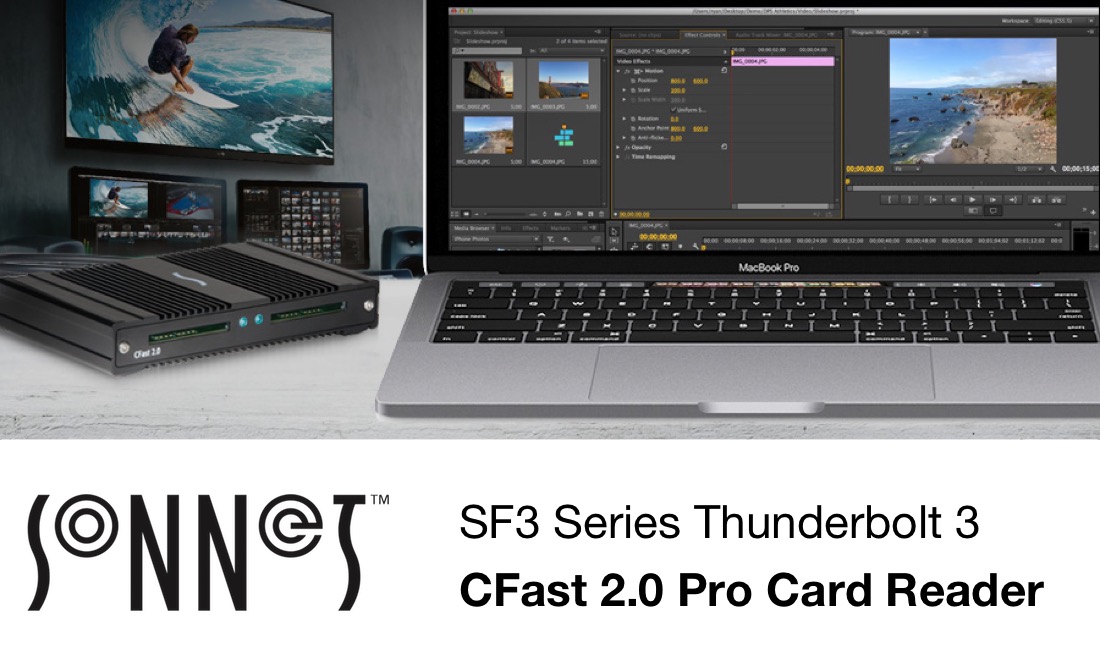A Sonnet Thunderbolt 3 termékvonalának egyik első tagja erre a területre kínál elegáns megoldást - építve a Final Cut Pro X és a MacBook Pro rendkívüli népszerűségére a kreatív mozgóképes területeken. A Sonnet SF3™ Series CFast™ 2.0 Pro Card Reader nevű terméke a Thunderbolt szabvány legújabb, 40 Gb/s átviteli sebességét nyújtó kivitelét tartalmazza, amely az USB-C alakzatot jelenti. Ennek köszönhetően jelenleg a MacBook Pro (Late 2016) szériával kompatibilis, de később más Mac gépekkel is használható lesz, amelyek Thunderbolt 3 kapuval kerülnek kiépítésre. Az Apple Thunderbolt 3 (USB-C) Thunderbolt Adapter termékével a régebbi, Thunderbolt 2 kapuval szerelt gépekre is csatlakoztatható az egység.