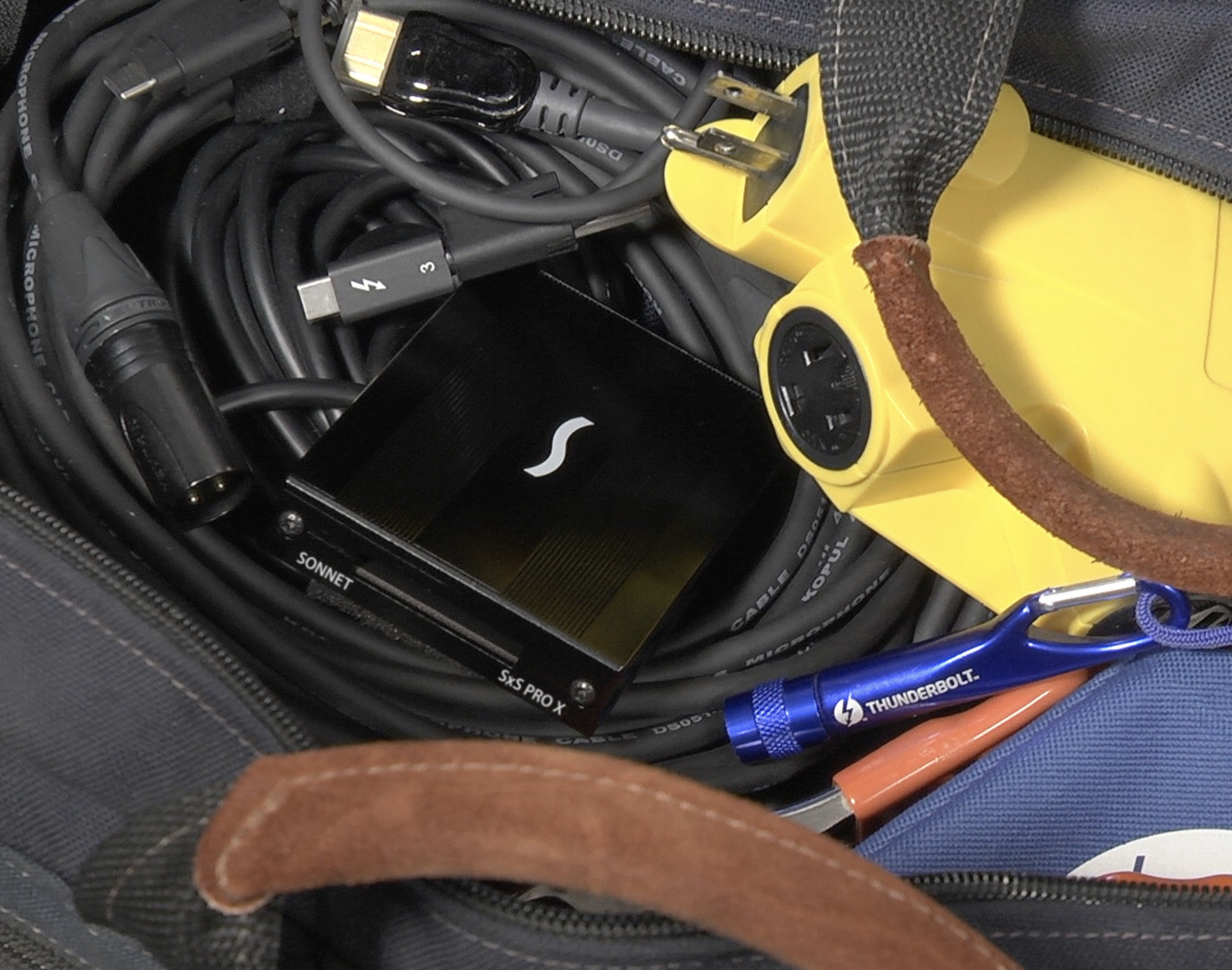 Csomag tartalma: Sonnet SF3 Series - SxS PRO X kártyaolvasó, tápegység, tápkábel, 50 centiméteres Thunderbolt 3 kábel, ThunderLok 3 kábel rögzítő