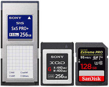 Kompatibilis kártyák: Sony SxS, SxS-1, SxS Pro, SxS Pro+ és SxS PRO X