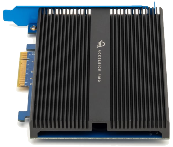 Az OWC Accelsior 4M2 egy teljes magasságú, fél hosszúságú PCI Express 3.0 x8 kártya, amelyet kifejezetten NVMe szilárdtest meghajtók elhelyezésére alkottak meg. Az OWC Accelsior termékcsaládja számos modellt tartalmaz, kisebbeket és nagyobbakat is, ám a 4M2 verzió különlegessége, hogy számos riválissal ellentétben csak fél hosszúságú, így lényegesen sokoldalúbban használható, mint a teljes hosszúságú kártyák.