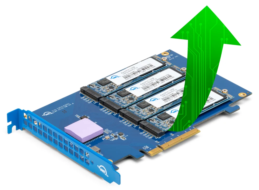 Az OWC Accelsior 4M2 PCIe kártya a legújabb Apple Silicon alapú Mac Pro modellekbe is beépíthető és 6000 MB/s fölötti sebességekre képes RAID0 tömbben formázva. Emellett kompatibilis a Mac Pro 2010-2012 közötti régebbi verzióival is, amelyeknél ez a megoldás a leggyorsabb tárhely opció, hiszen ott a merevlemez foglalatok még SATAII szabványúak voltak.
