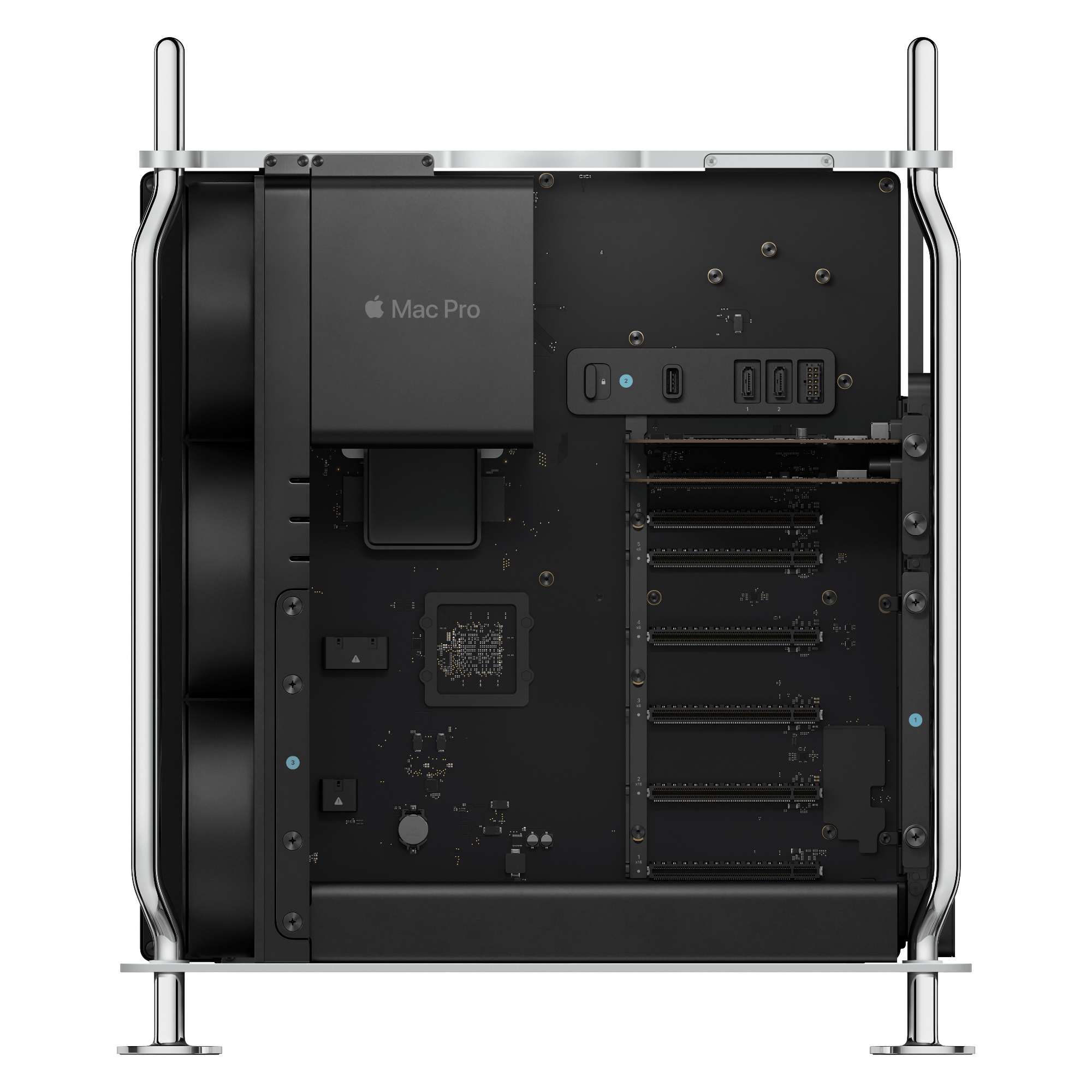 Az egységen RAID0 tömbbe szervezve érhetjük el a legnagyobb átviteli sebességet és kapacitást. Így a már kedvező árú 4 TB-os SSD-kből 32 GB kapacitást építhetünk ki. A még drága 8 TB-os szilárdtest meghajtókból 64 TB tárhelyet építhetünk egyetlen kártyahelyre. Ezen rendkívüli mennyiségű adat fér el, ráadásul a Mac Pro gazdag kártyahelyei révén akár több ilyen kártyát is elhelyezhetünk a rendszer belsejében.