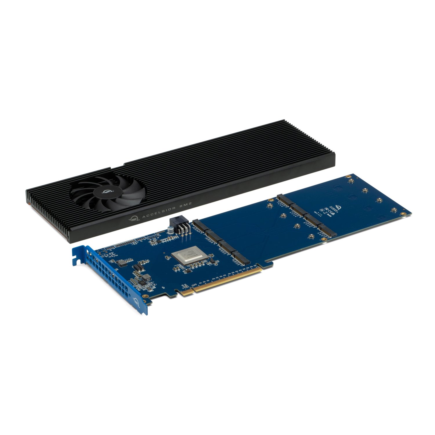 Mivel a mai modern szilárdtest meghajtók a gyorsaságuk nyomán igen jelentős hőt szabadítanak fel, az OWC Accelsior 8M2 PCIe kártya aktív hűtéssel rendelkezik a passzív hűtőbordázat mellett, hogy folyamatosan alacsonyan tartsa a meghajtók hőfokát, elkerülve a teljesítmény visszaesését, valamint a hardverek számára kedvezőtlen működési körülmények kialakulását.
