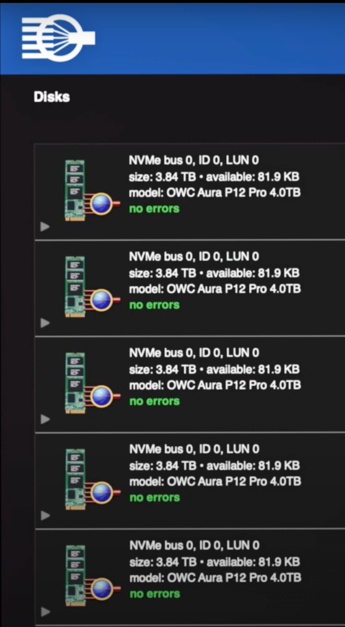 Az OWC mellékeli a kártya mellé a SoftRAID szoftverét, amellyel a macOS RAID Assistant képességeinél bonyolultabb tömböket is létrehozhatunk, illetve folyamatosan figyelhetjük az egyes meghajtók egészségét és hibajelzéseit, megelőzve a bajt akkor, amikor több év után az alkatrészek fáradni kezdenek.
