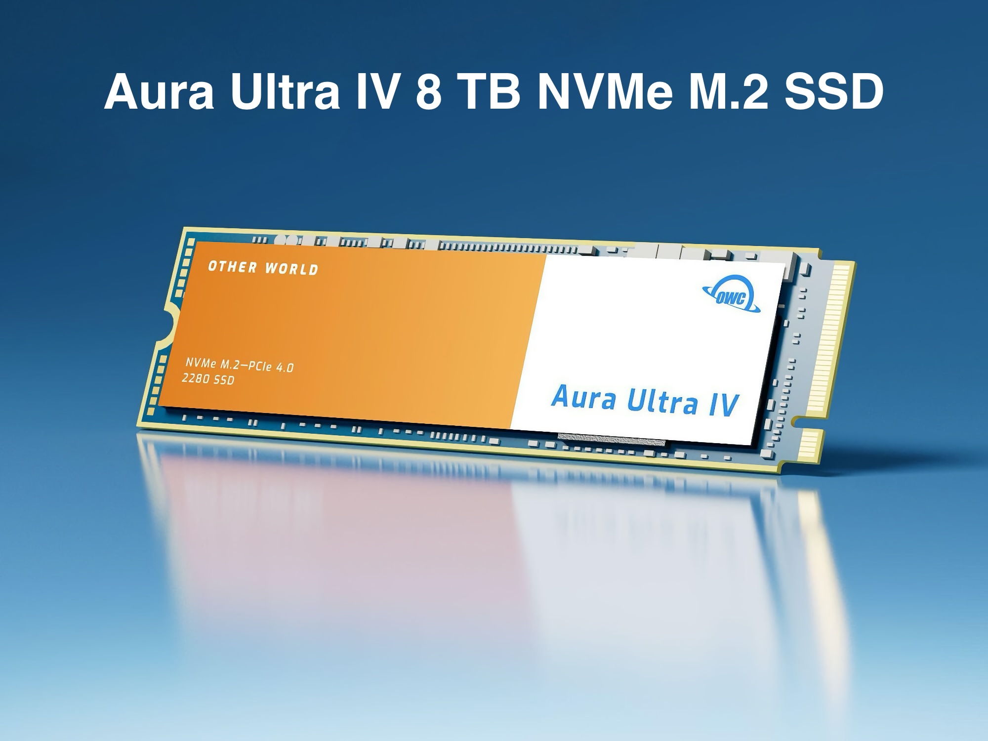 Az OWC Aura Ultra IV 8 TB szilárdtest meghajtója kiemelkedő tárkapacitást biztosít az olyan szakterületek számára, mint a nagy felbontású videófeldolgozás: 2280-as szabványos méretbe csomagolva 8 TB tárhelyet nyújt olyan külső meghajtókban, mint a népszerű OWC Express 1M2 USB4 foglalat, illetve RAID rendszerekben összekapcsolva akár 16 TB, 32 TB vagy 64 TB tárhely is összesűríthető a segítségével!