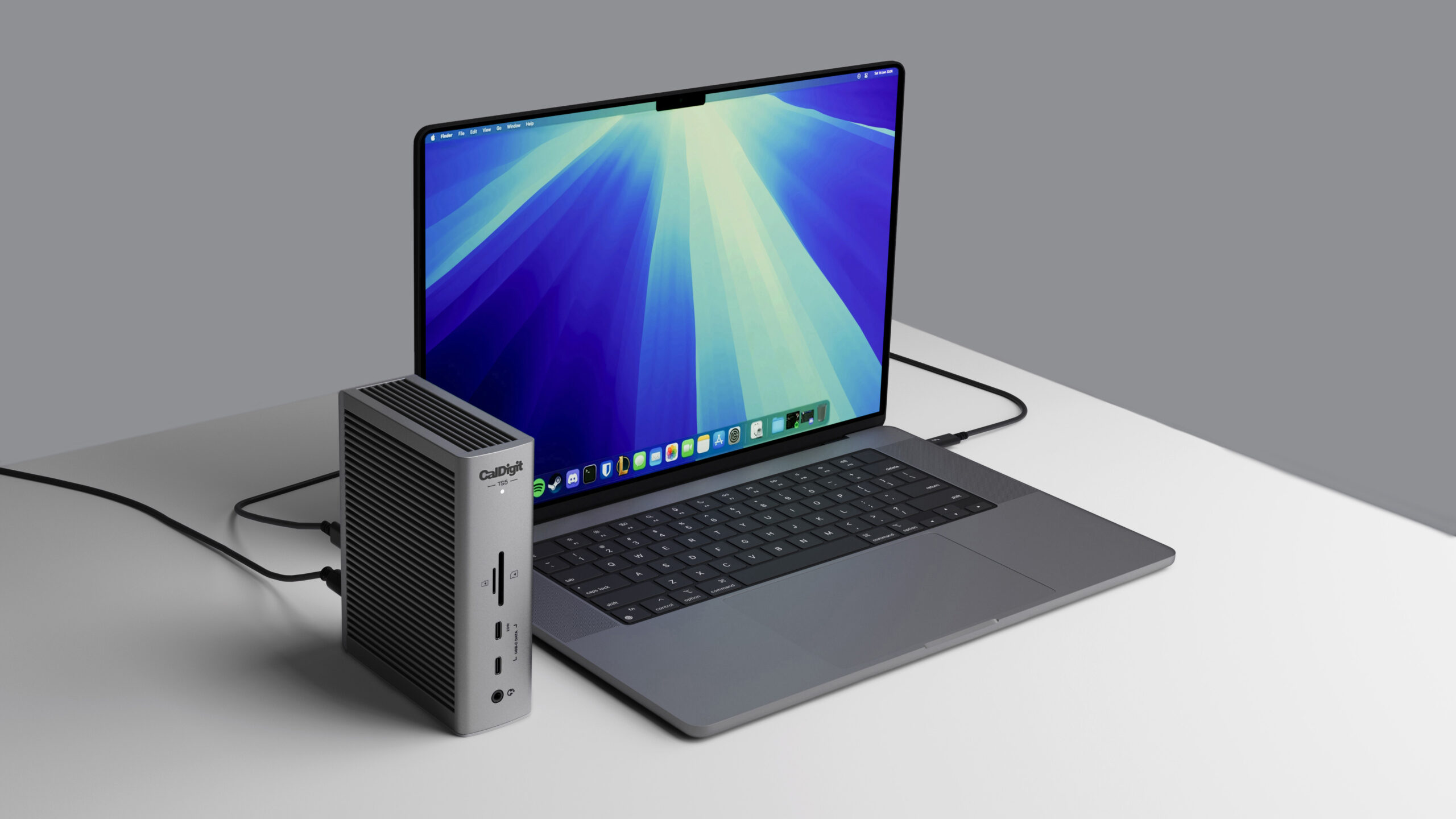 A CalDigit TS5 dokkoló megoldása a Mac Thunderbolt 5 kapujára kapcsolóval kínál 15 darab hasznos csatlakozót, miközben bármely Mac számára elegendő hatékony töltést is képes biztosítani akár 140 watt leadásával. Ráadásul a gyártó továbbviszi a termék eredeti, 2015-ös változatának ikonikussá vált formatervét, amely révén állított és fekvő módban is használható és stabilan elhelyezhető a dokkoló.