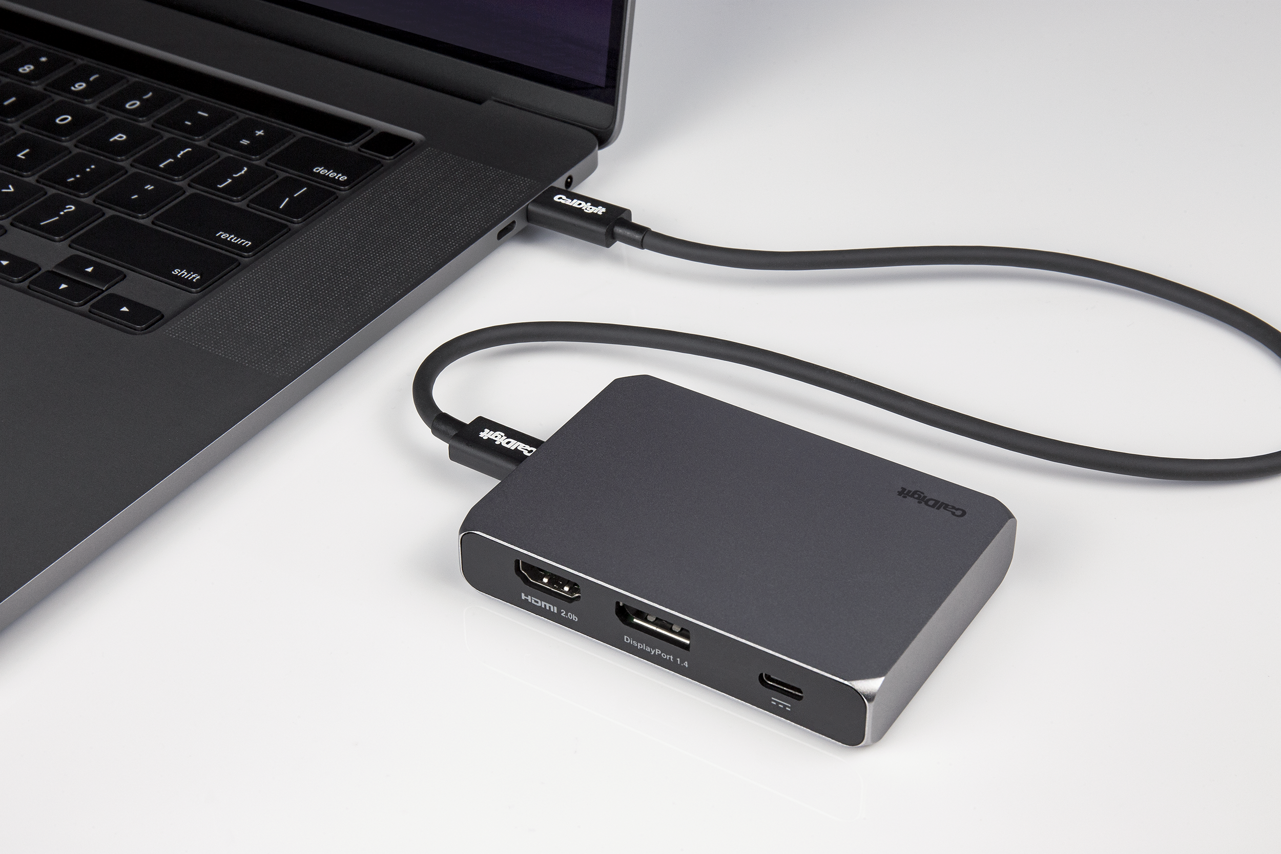 Az eszköz hátoldalán egy HDMI 2.0b csatlakozó található, amely az USB szabvány révén maximum 4K felbontást támogat 60 Herz képfrissítéssel. Ehhez fontos paraméter, hogy a forrás is tudja a HDMI kimeneten a 60 Herzet, illetve megfelelő HDMI 2.0 kábelt használjunk, mint a kínálatunkban lévő AudioQuest megoldások. A CalDigit SOHO Dock HDMI 2.0b kapuja támogatja a nagy dinamikatartományú videók megjelenítését (HDR), amely számos Apple TV+ tartalom esetén alapvető paraméter.