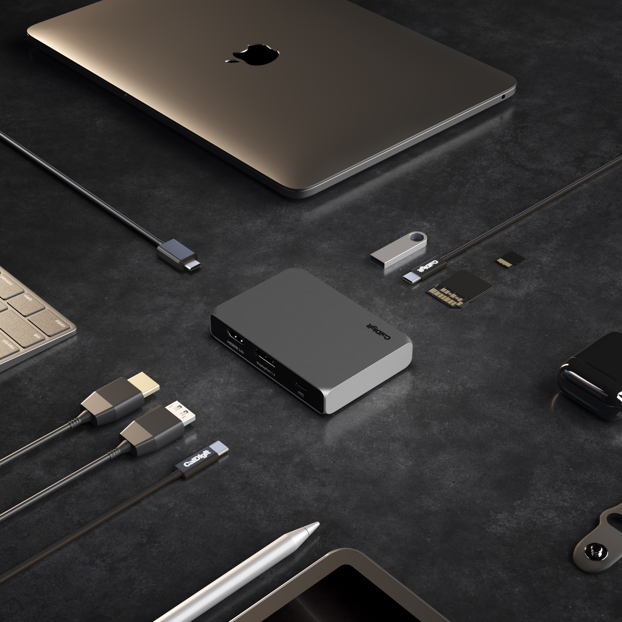 A brit CalDigit a névadásának megfelelően a kis és otthoni irodai környezetek számára alkotta meg legapróbb, ám sokoldalúságban nem szűkölködő USB-C dokkolóját, a CalDigit SOHO Dock nevű egységet. A Small Office és Home Office (SOHO) világban a nagy hatékonyság és a kis méret alapvető igény, amelyhez a termék könnyed mobilizálhatósága is kapcsolódik, hiszen az egység a Mac-ről kapja a tápellátását. Az egység 93 milliméter széles, 64,3 milliméter mély és 19 milliméter magas alumínium test, tömege mindössze 90 gramm, vagyis a mobilitása nem kihívás!