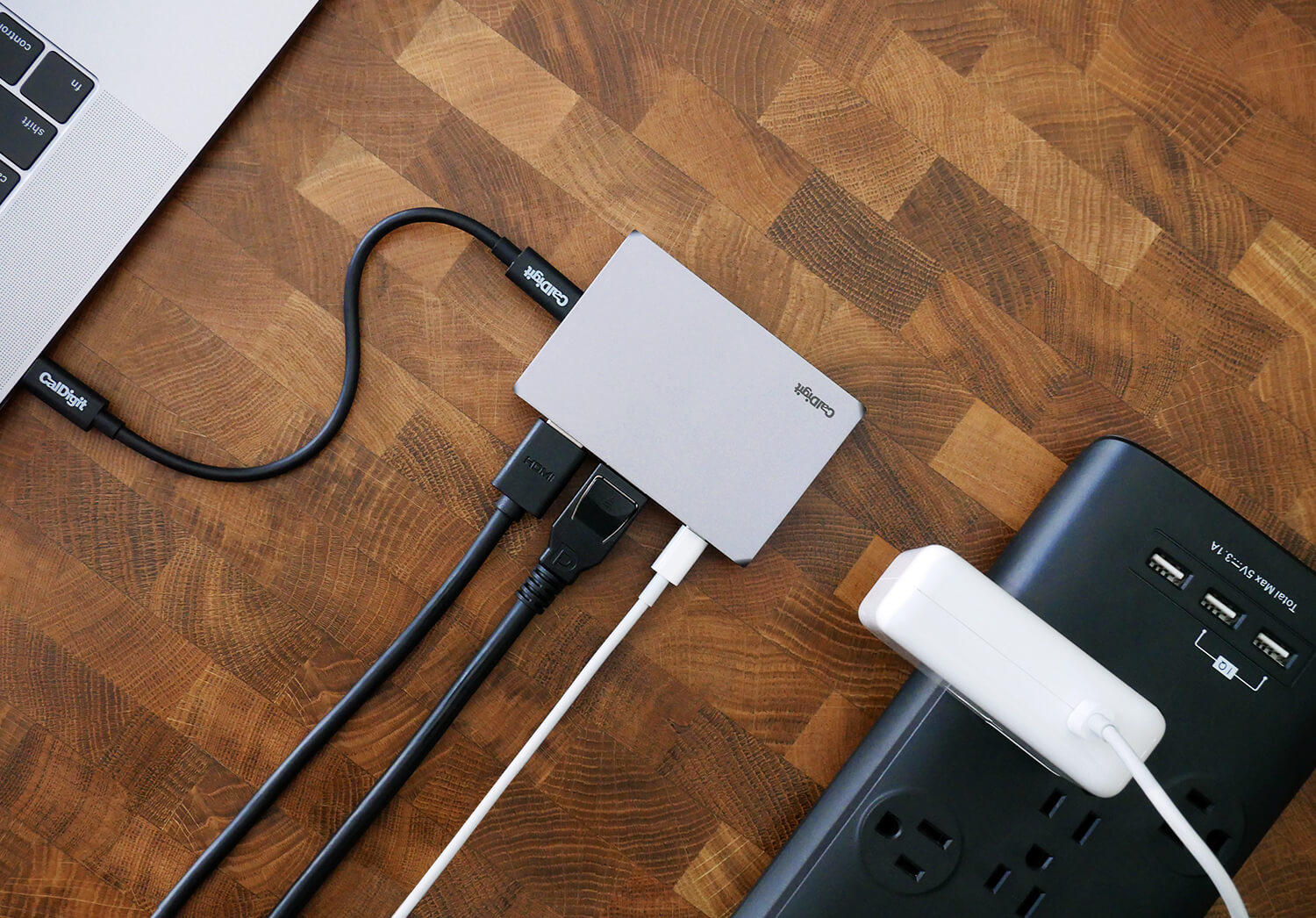 A CalDigit SOHO Dock mellé a gyártó thermoplasztik elasztomer bevonatú, rugalmas és strapabíró kábelt biztosít, amely koaxiális belső kialakítással rendelkezik, amely 80x jobb átvitelt kínál, mint a tekercselt kábelek. A csatlakozóvégek belseje 30 karátos arany lapkákkal vannak bevonva, amely segít elkerülni a korróziót, miközben jobb vezetést tesz lehetővé.