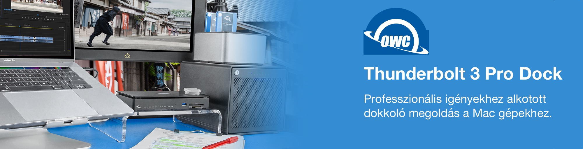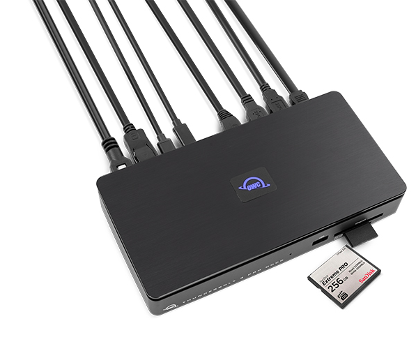 Az Other World Computing az elsők között alkotta meg az Apple által alkalmazott új szabvány, az USB-C, majd a benne foglalt Thunderbolt 3 technológiához kapcsolódó dokkjait. A gyártó tovább gondolta a területet, és megvizsgálta, hogy mik lehetnek azok a képességek, amelyekre a professzionális felhasználóknak szüksége lehet. Így született meg az OWC Thunderbolt Pro Dock, amely az előoldalán a leggyorsabb SD-kártya olvasó mellett CFexpress foglalatot is tartalmaz, míg a hátoldalán egy szabad Thunderbolt 3, DisplayPort és 10 GbE csatlakozó is helyet kapott.